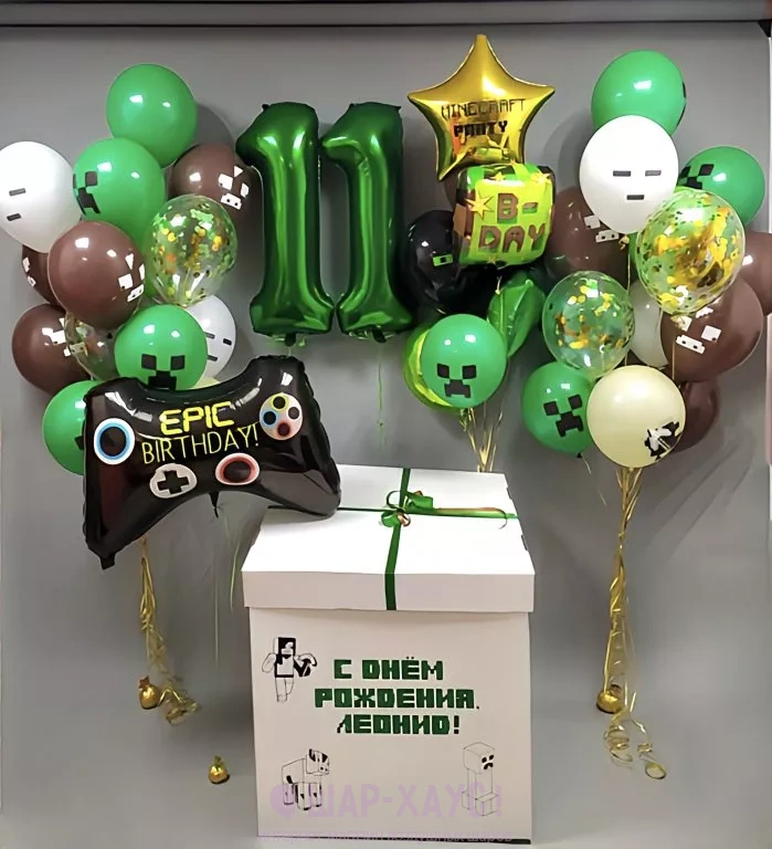 • 1 Зеленый латексный воздушный шар с рисунком тематики "Minecraft" (35 см)