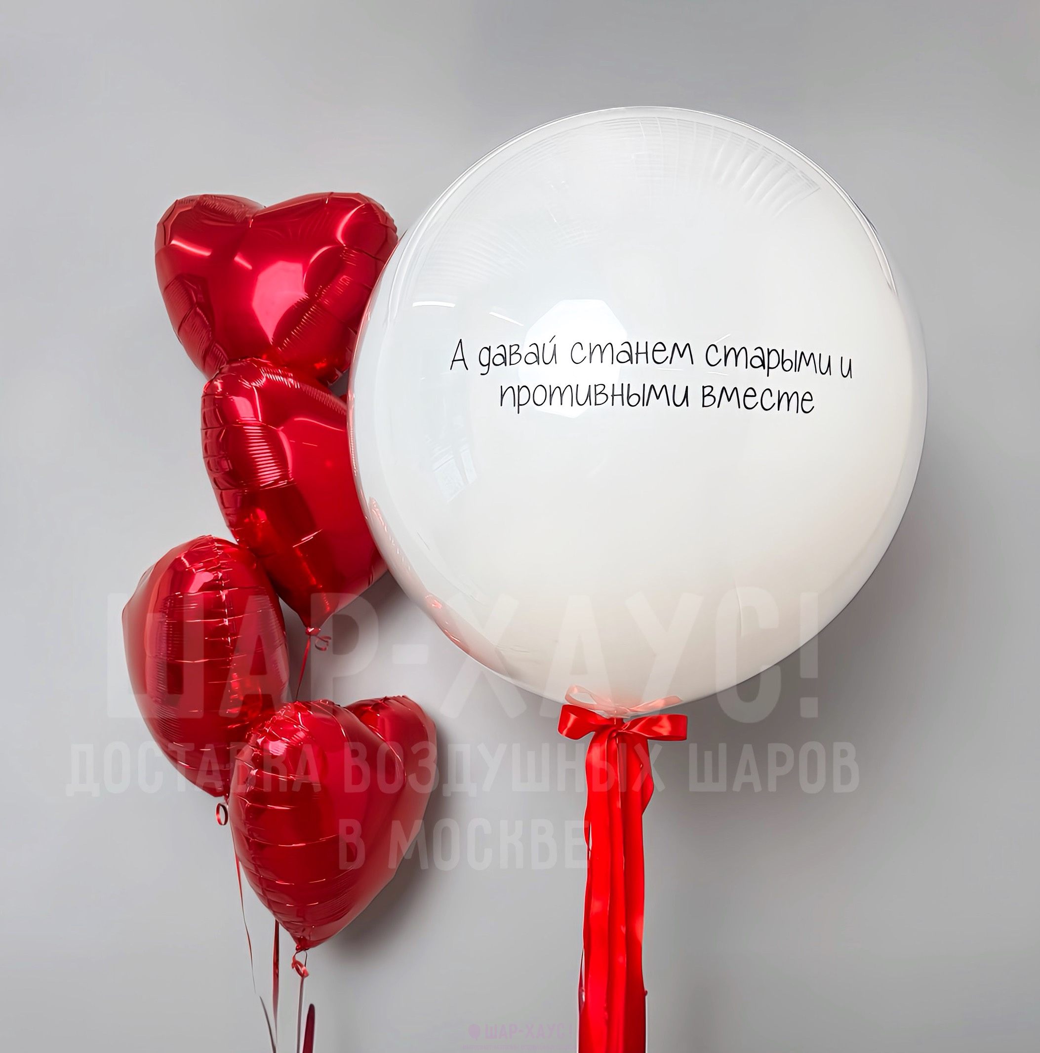 Большой шар с надписью и сердца