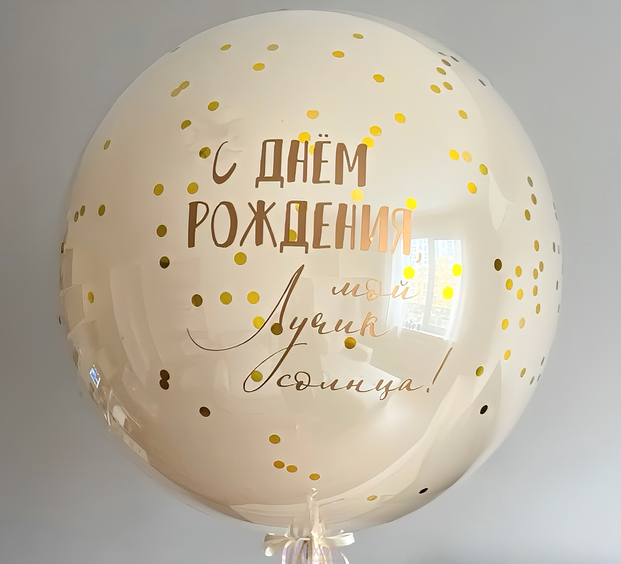 Декоративный грузик в комплекте. Вы можете изменить надпись, цвет шара и конфетти - укажите желаемые изменения в комментарии в корзине