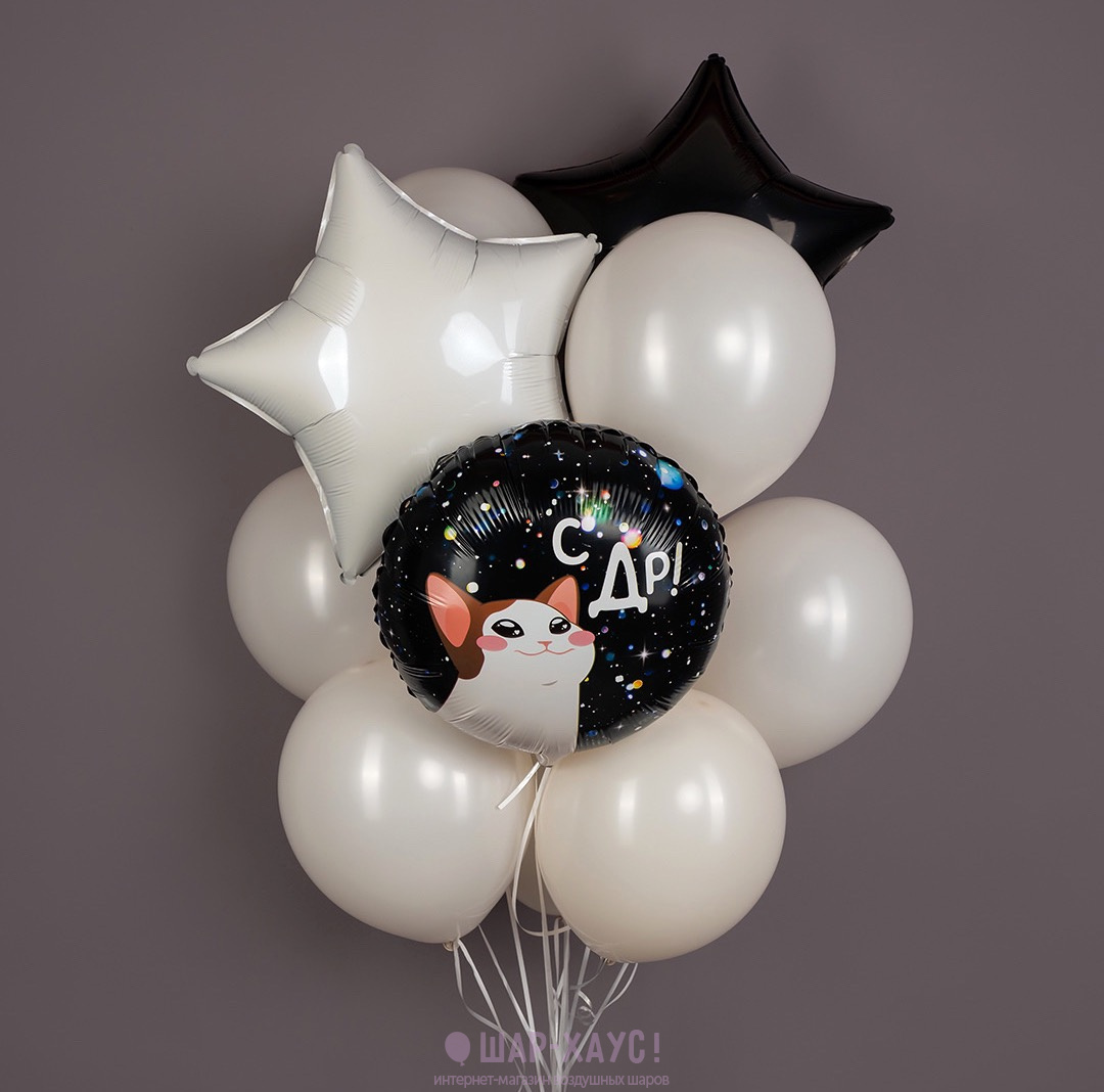 Букет из шаров "С ДР (Космический котик)"