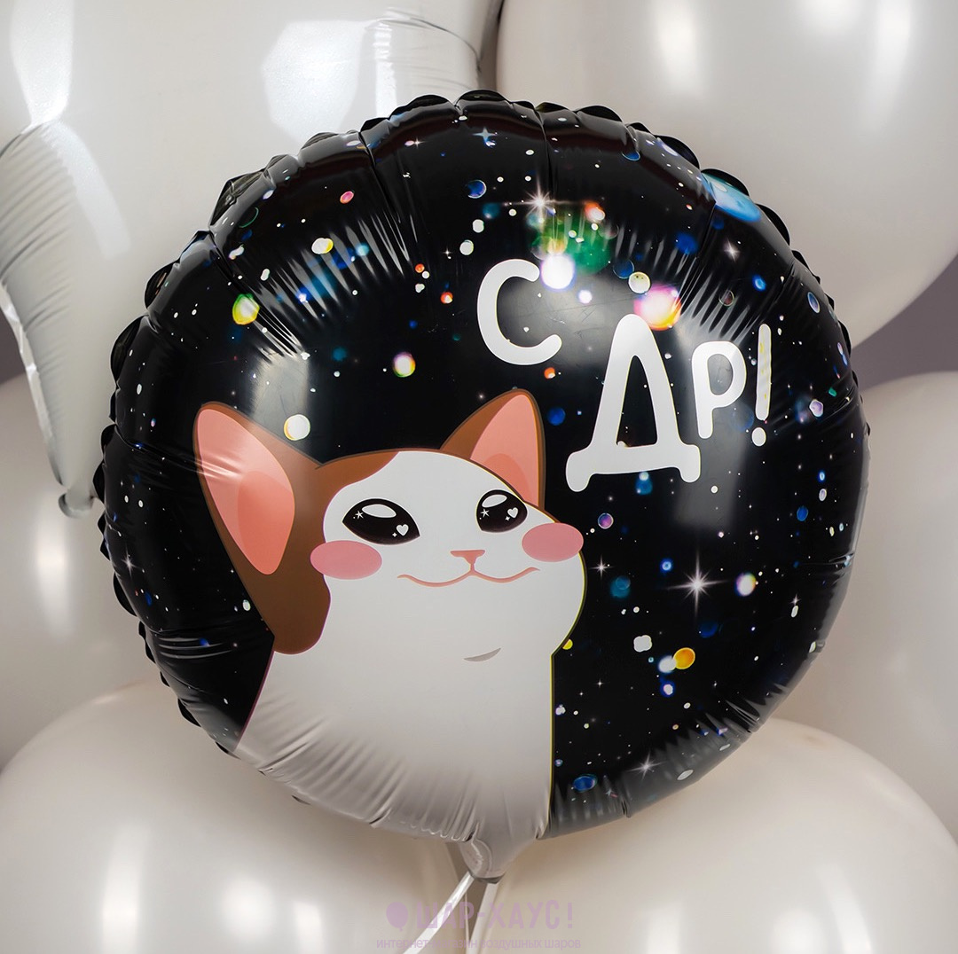 • 1 Фольгированный круг "С ДР! (котик)"