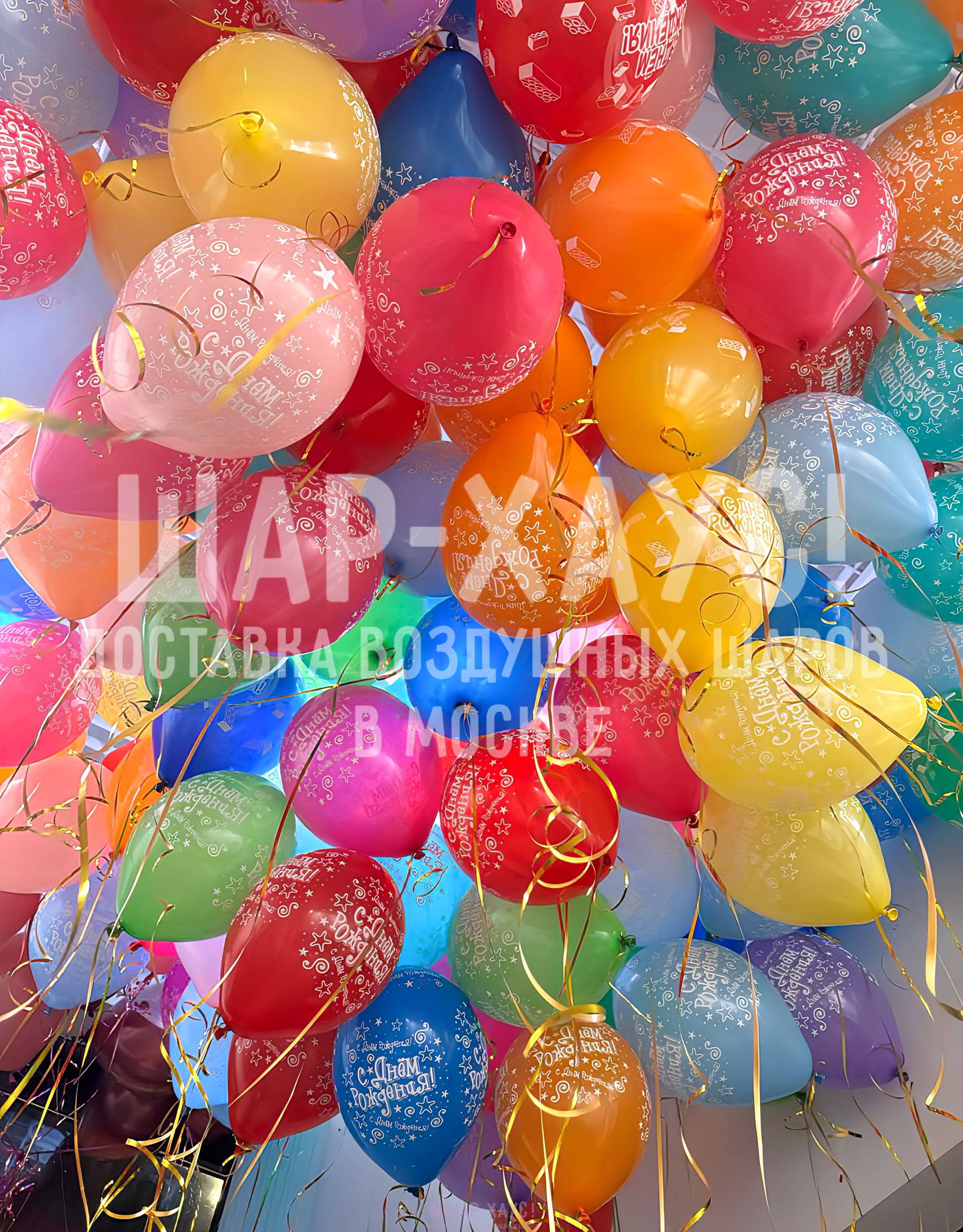 • Латексные шары с гелием и надписями " С Днем рождения" (35 см)