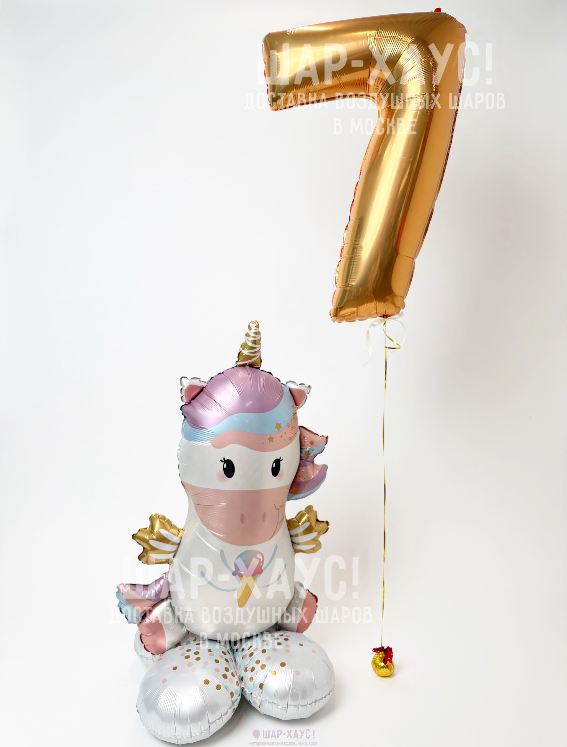 Фольгированная фигура на подставке "Единорог с мороженым"