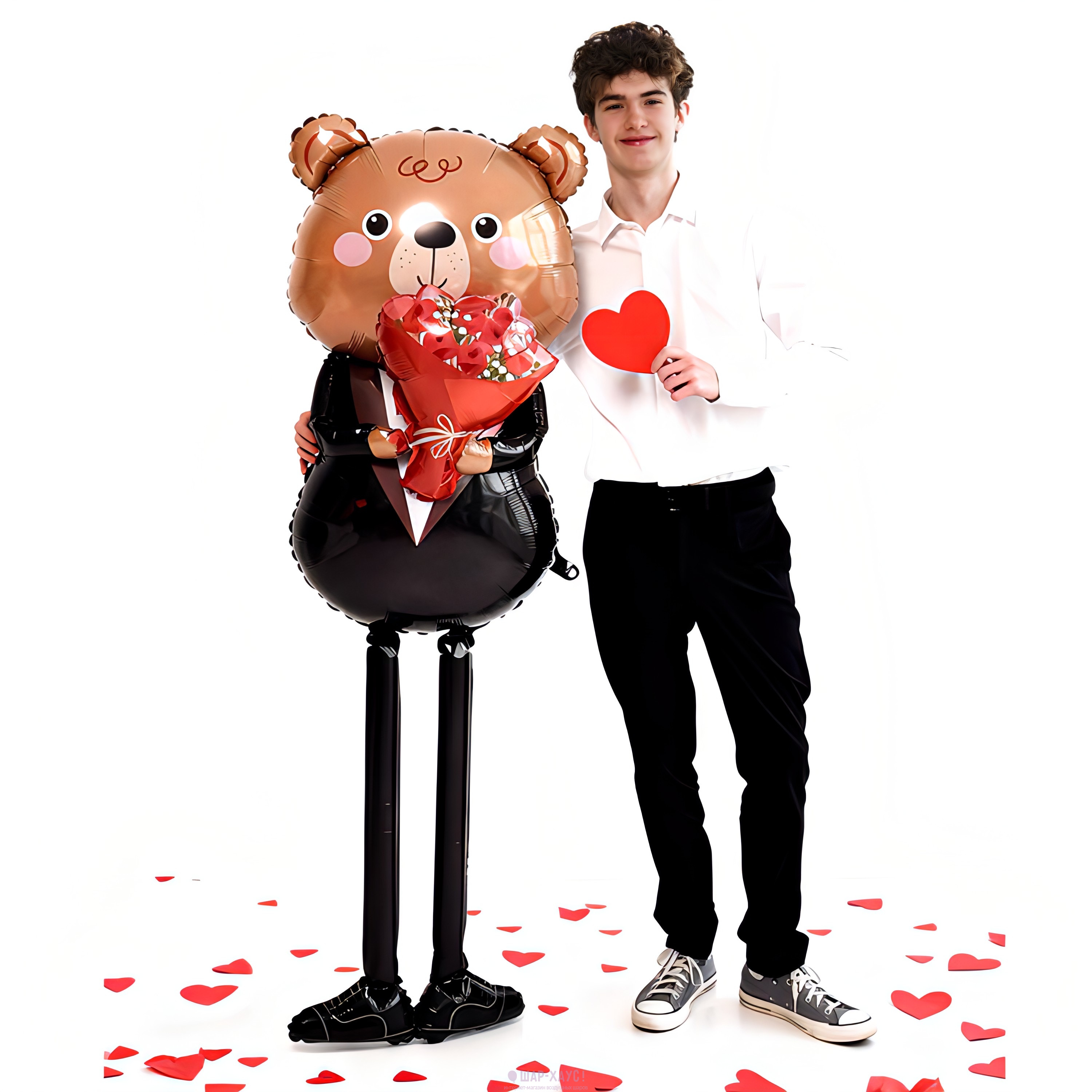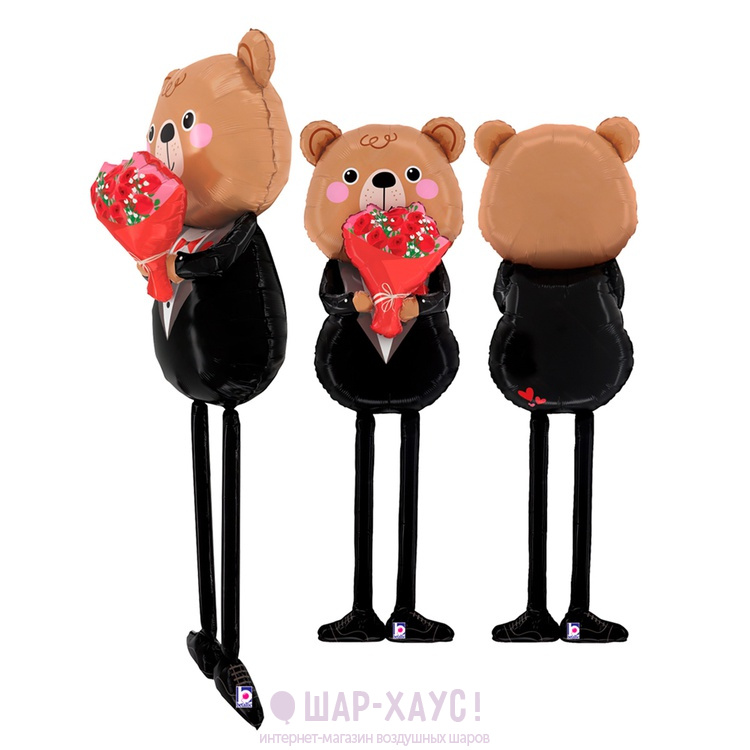 Фольгированная 3D фигура "Мишка с букетом роз"