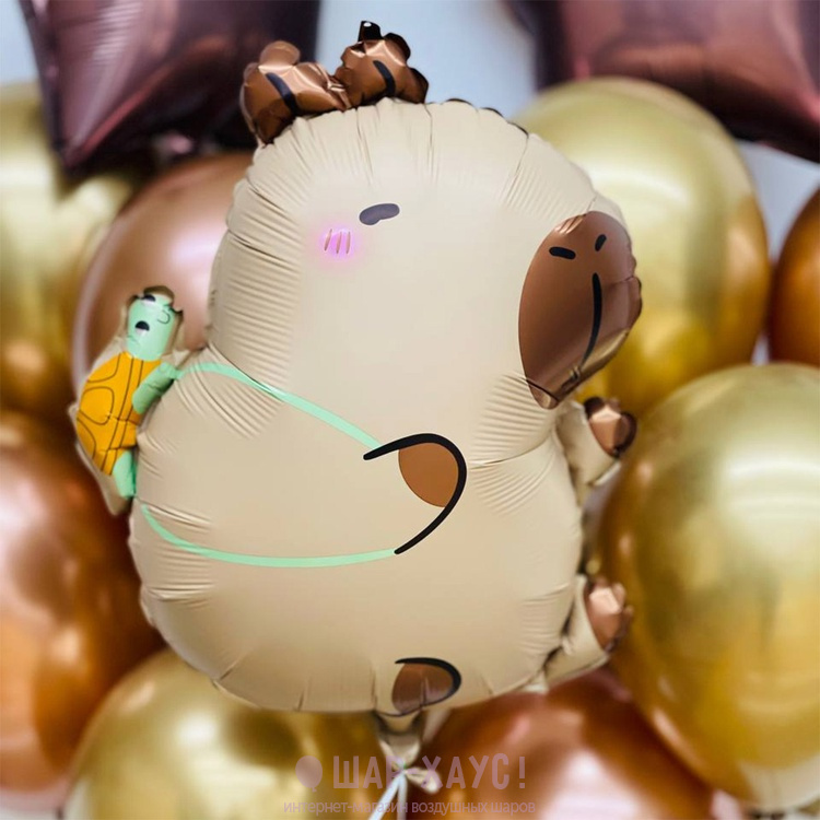 Фольгированная фигура "Капибара с черепашкой" 64 см