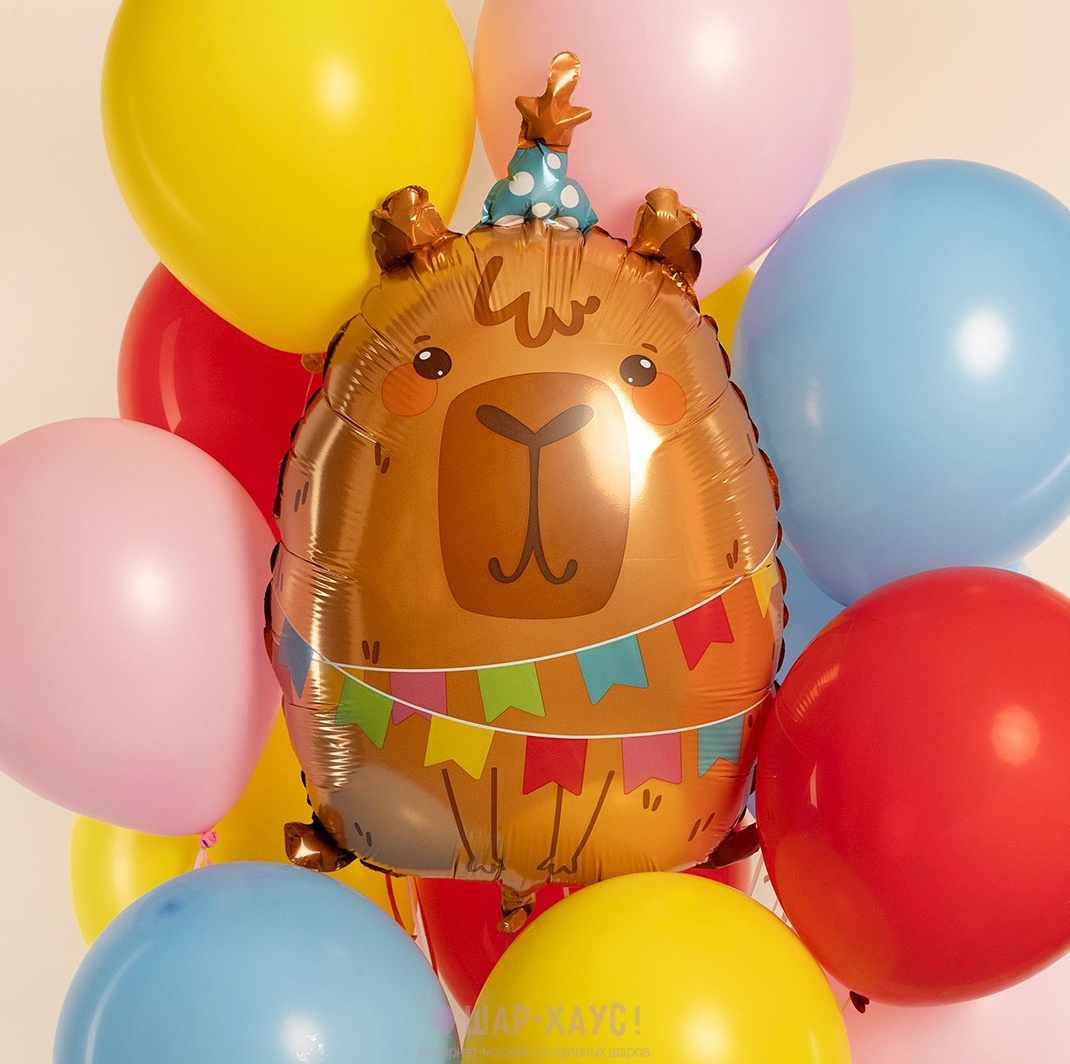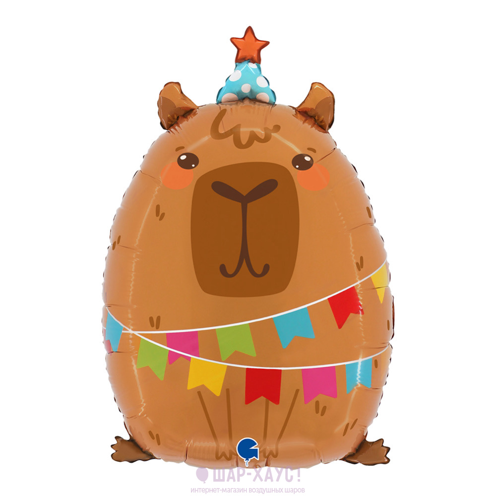 Фольгированная фигура "Капибара Вечеринка" 58 см
