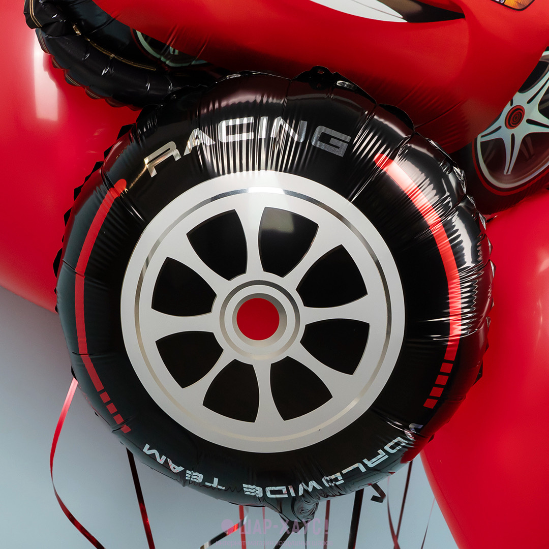 Фольгированный круг "Гоночное колесо, Черный/Красный"