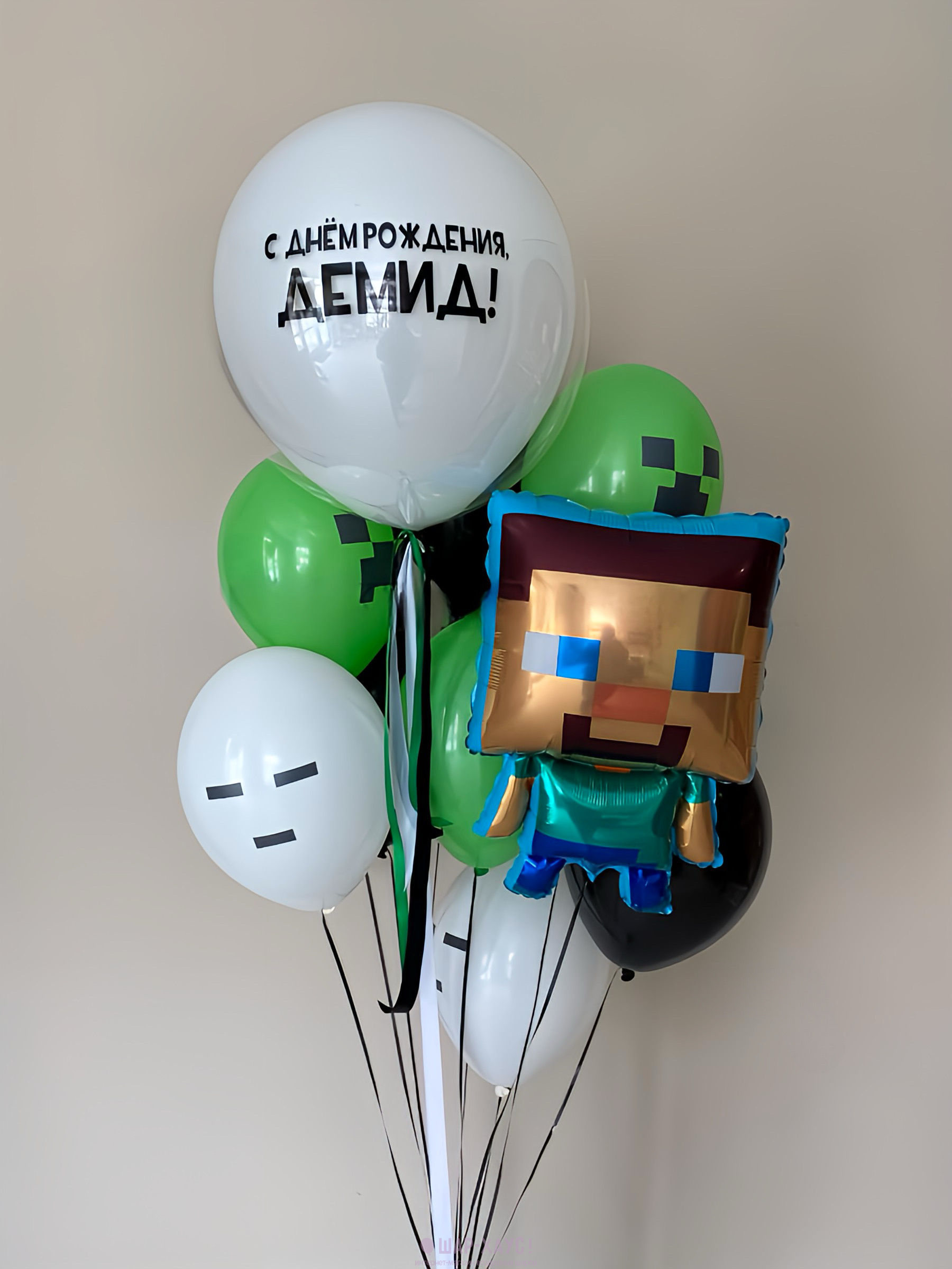 • 2 Белых воздушных шара с рисунком тематики "Майнкрафт" (35 см)