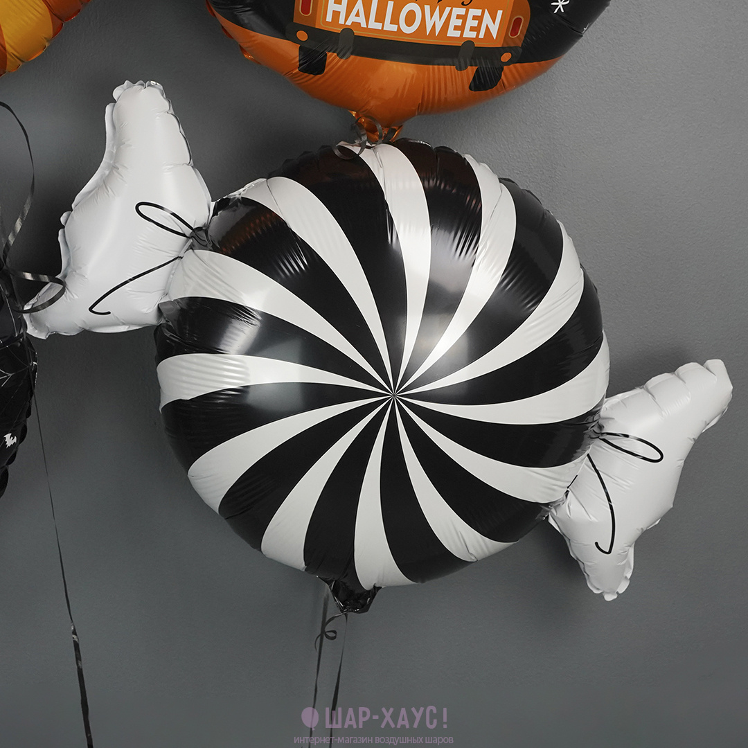 • 1 Фольгированная фигура "Конфета Черный / Белый" с надписью на выбор (76 см)