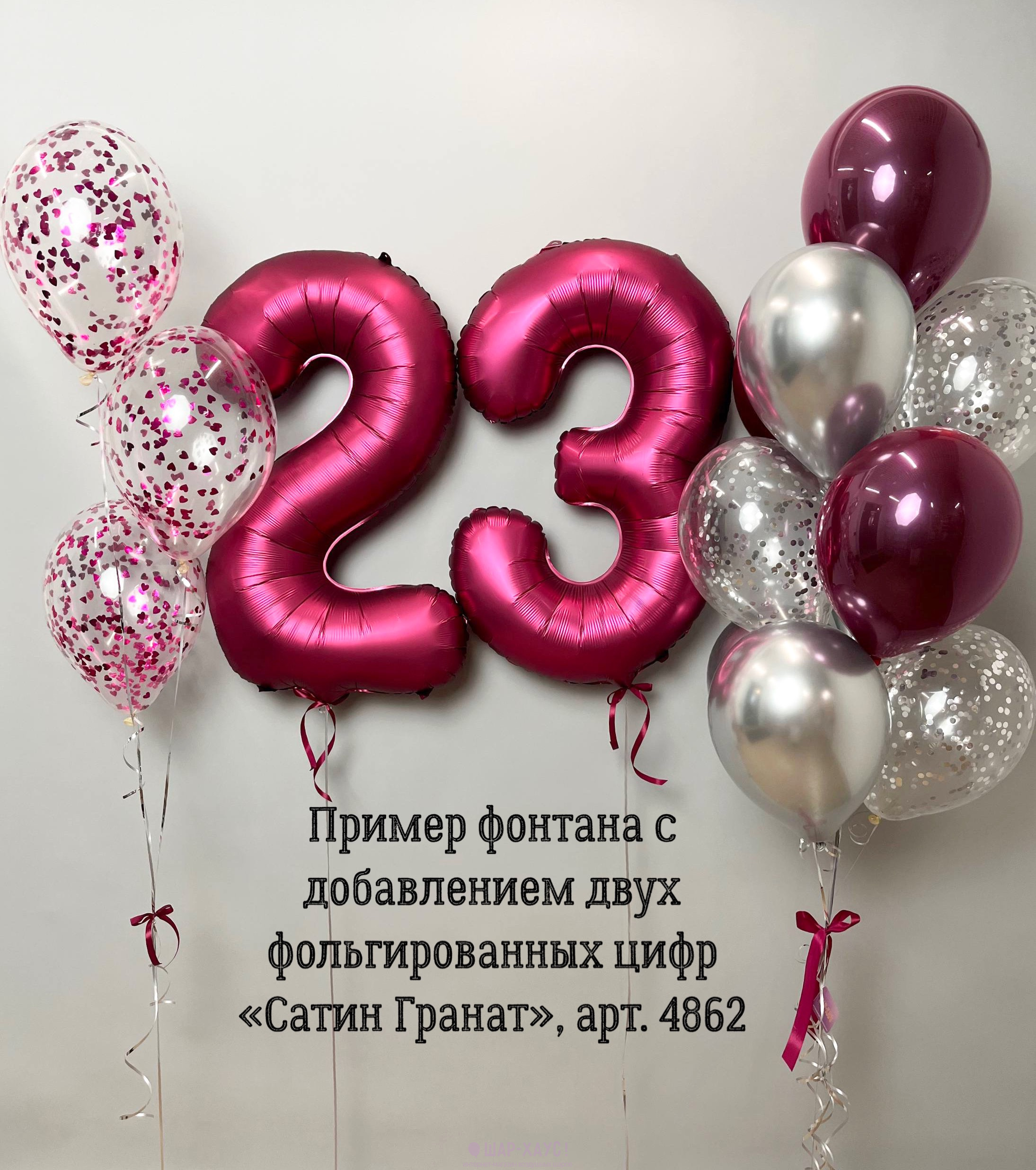 Фонтан из шаров "Бордо и серебро"