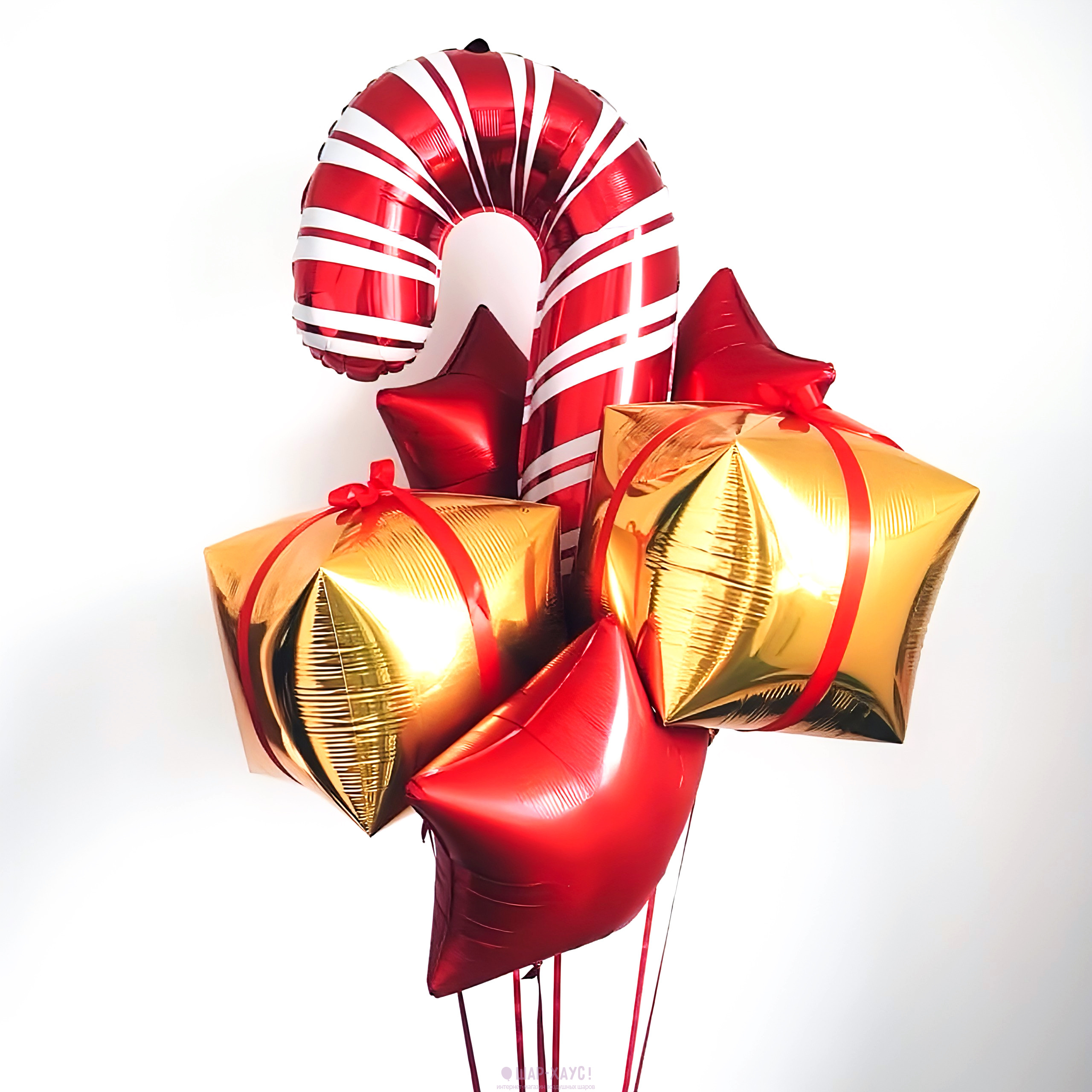 • 2 Фольгированных 3D куба "Подарок" с красной лентой (51 см)