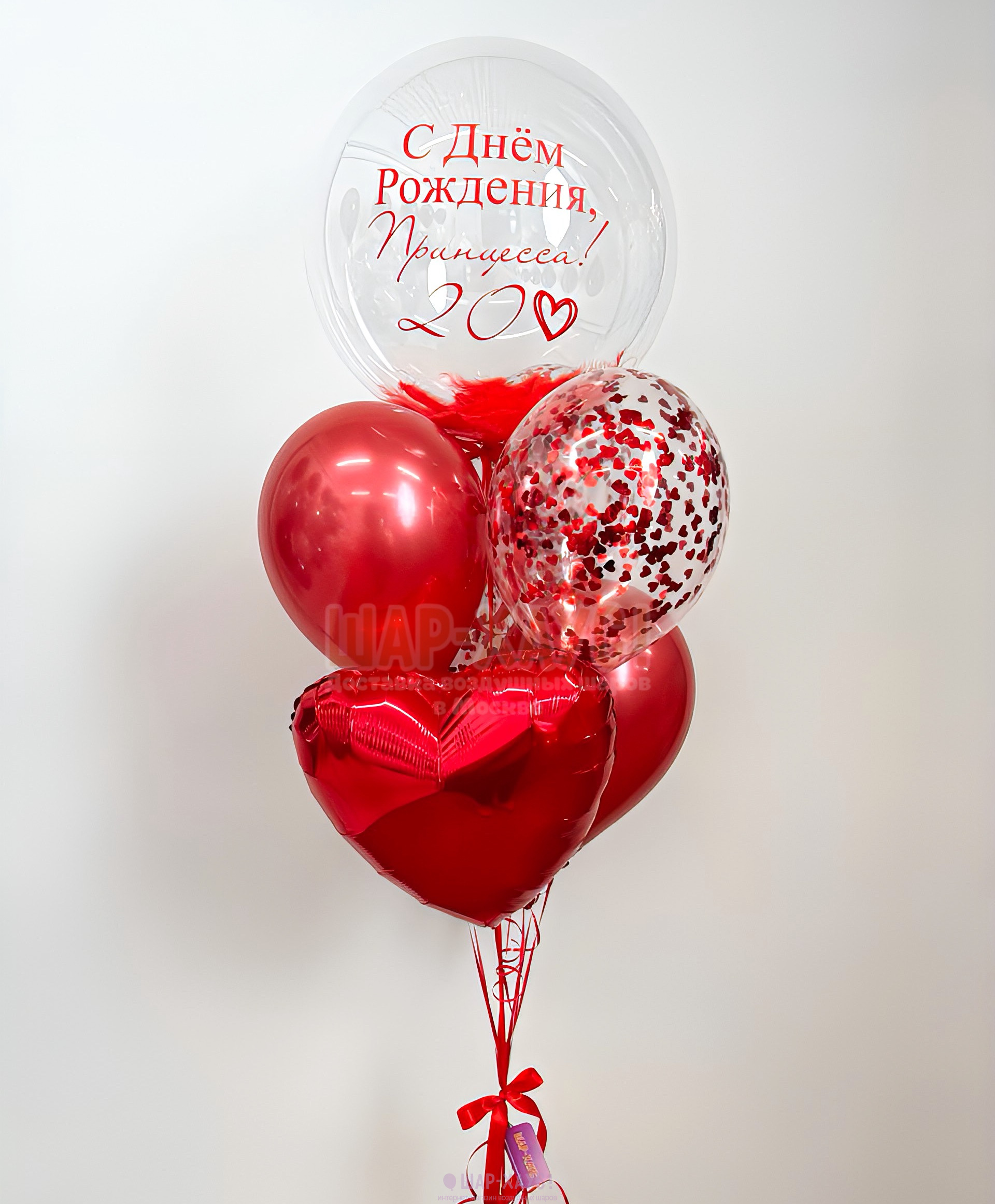 • 3 Прозрачных шара с конфетти-сердечками внутри (35 см)
