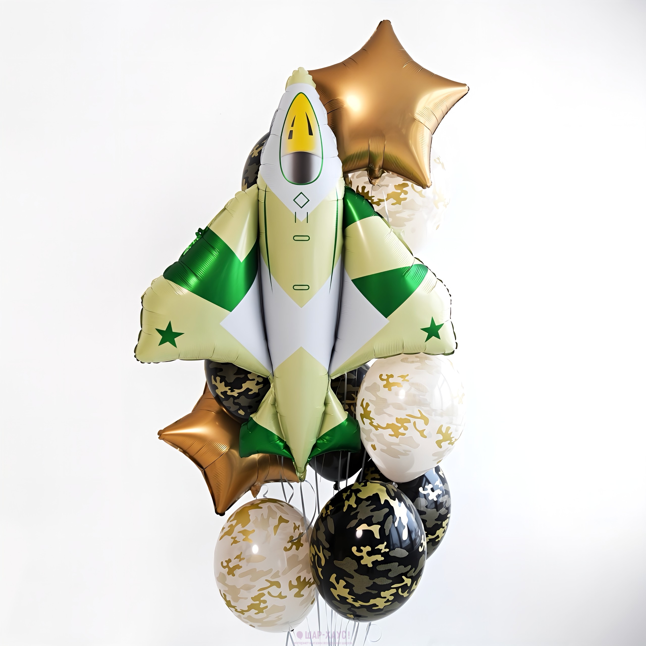 • 1 Фольгированная фигура "Военный самолет Камуфляж сатин" (104 см)