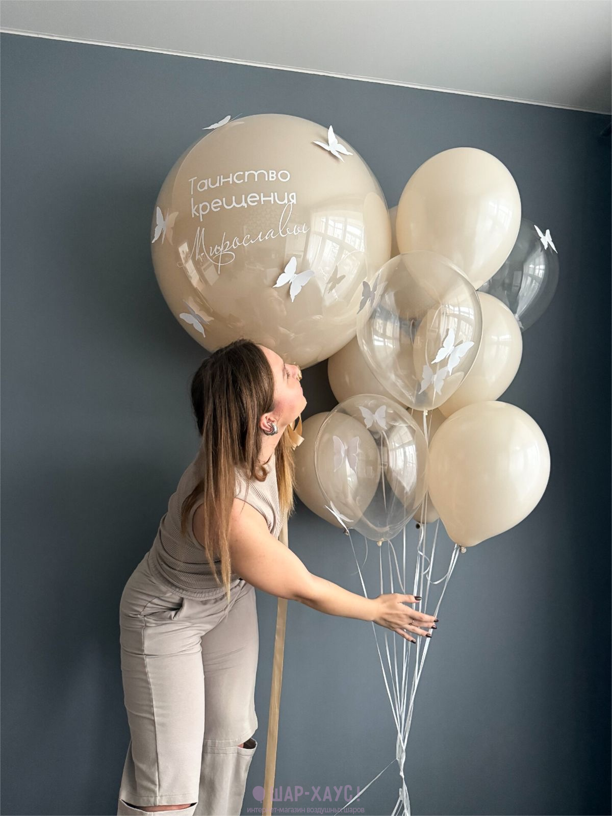 Композиция из шаров "Бабочки на крещение"