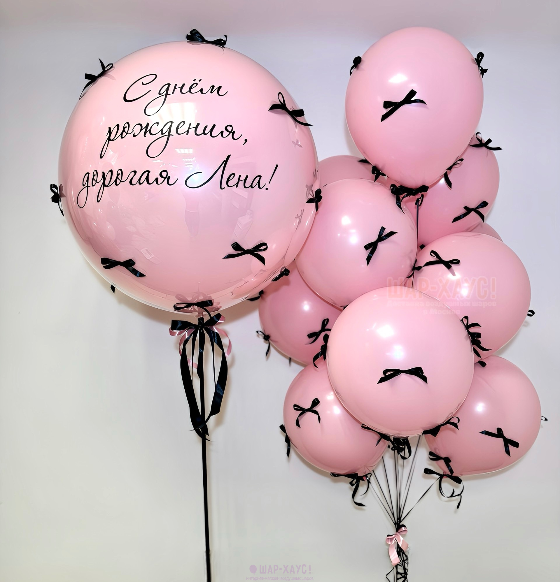 Вы можете изменить состав и цвет шариков в данной композиции, цвет бантиков, а также индивидуальную надпись.