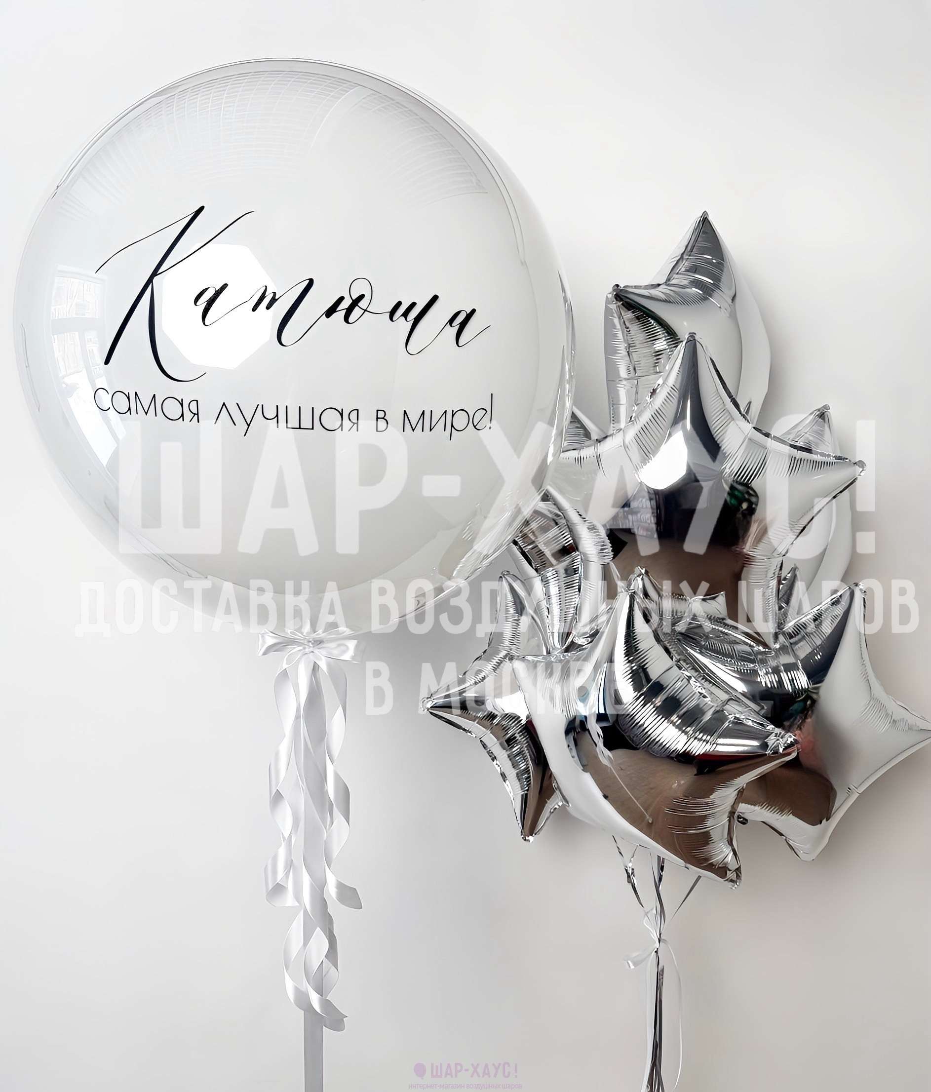 • 1 Большой стеклянный воздушный шар Дабл стафф с надписью на выбор (61 см)