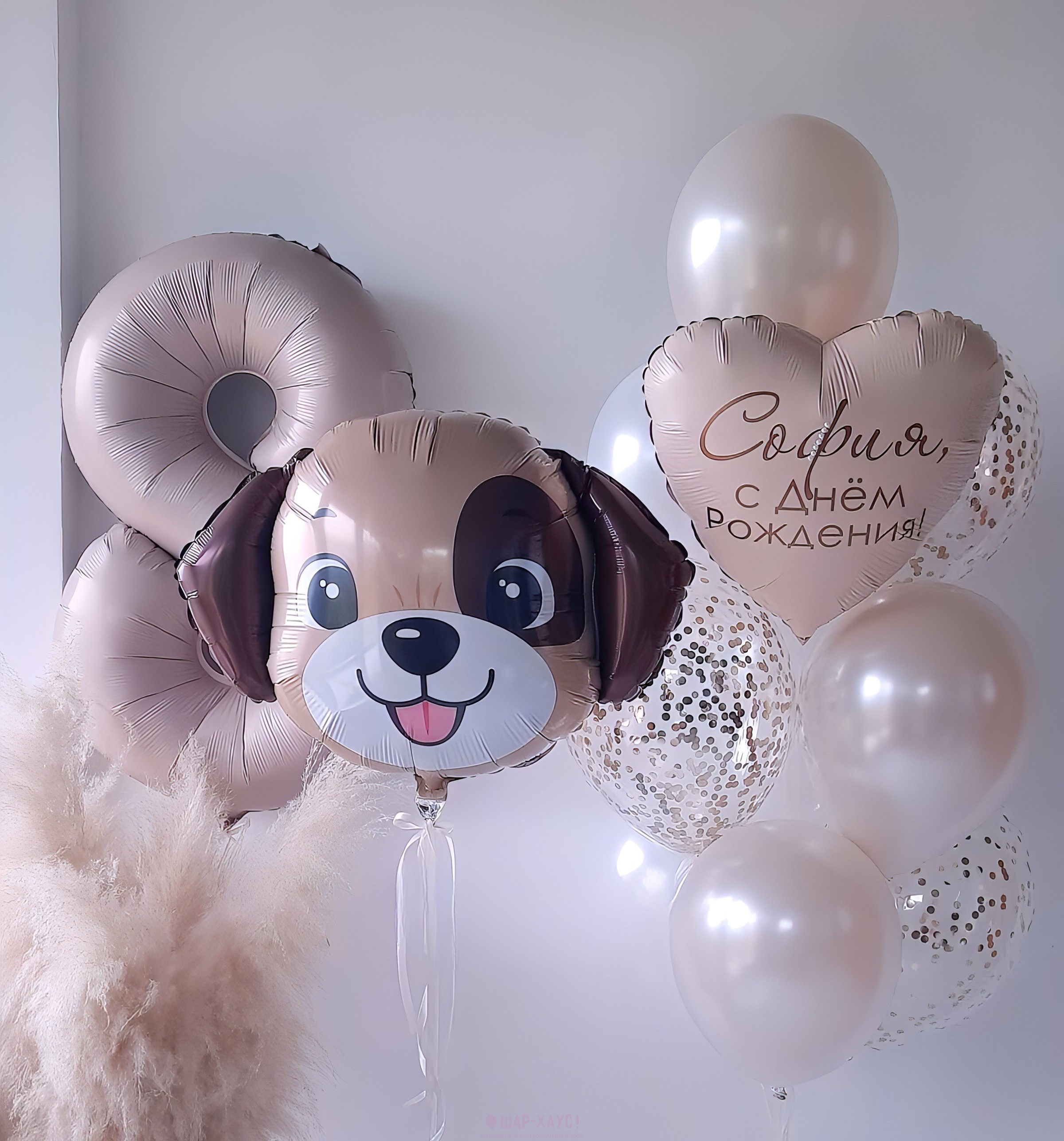 Композиция из шаров "Бежевая собачка"