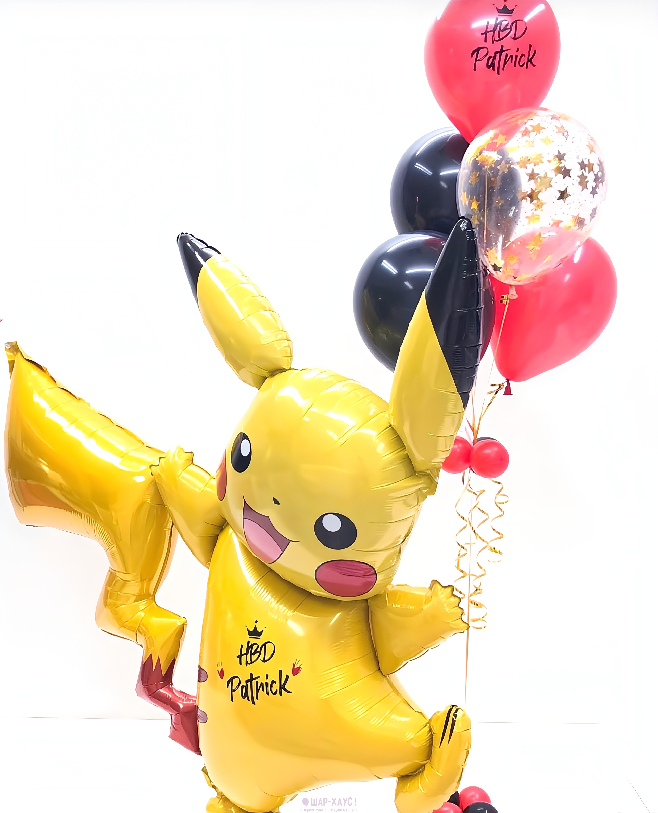 Композиция из шаров "Большой Пикачу и красный фонтан"