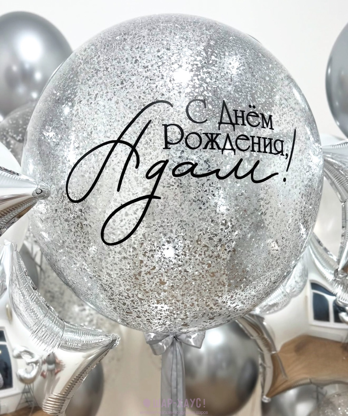 • 1 Латексный шар-гигант с конфетти-крошкой и надписью на выбор (60 см)