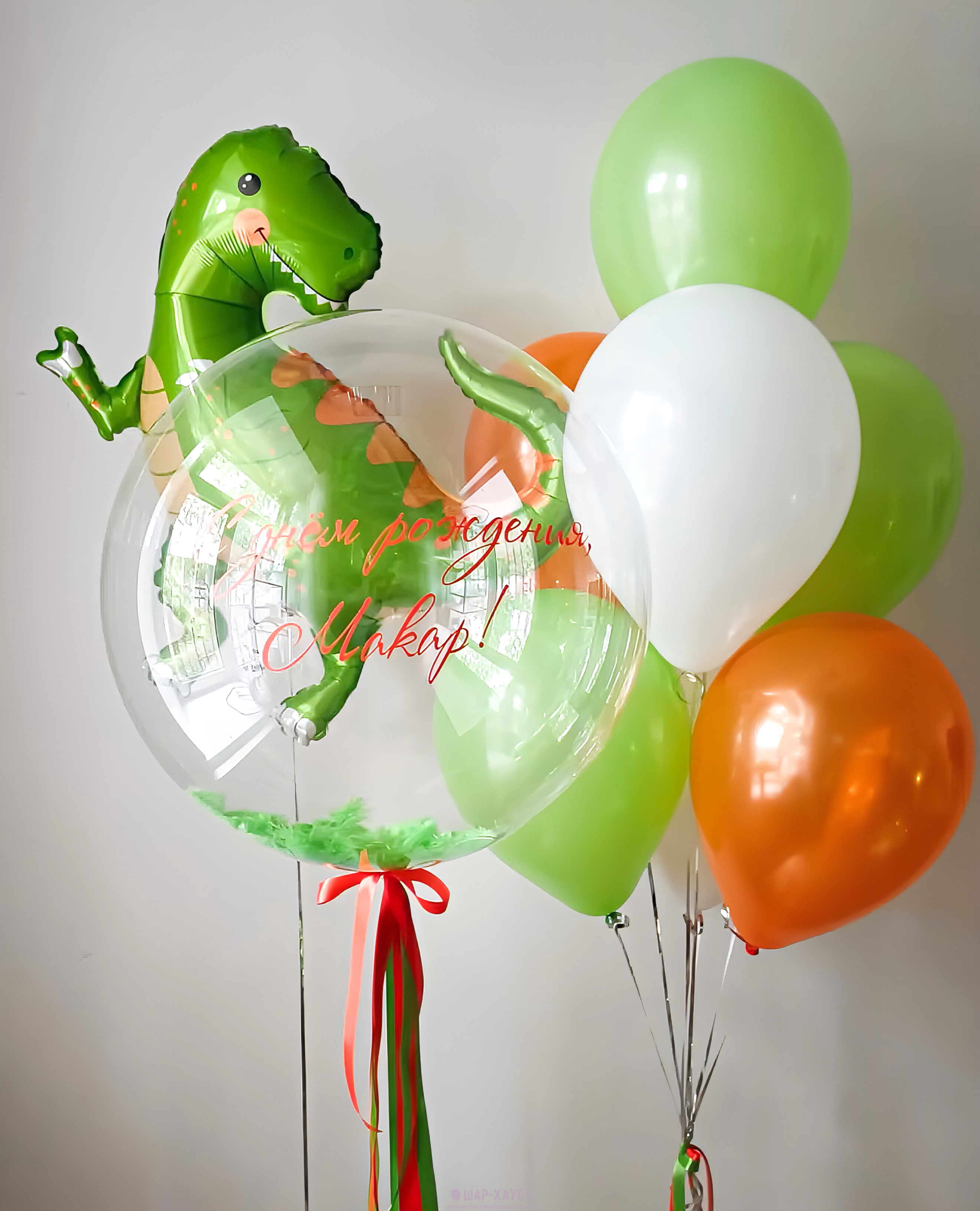 • 1 Воздушный шар Бабл с перьями внутри и надписью на выбор (50 см)