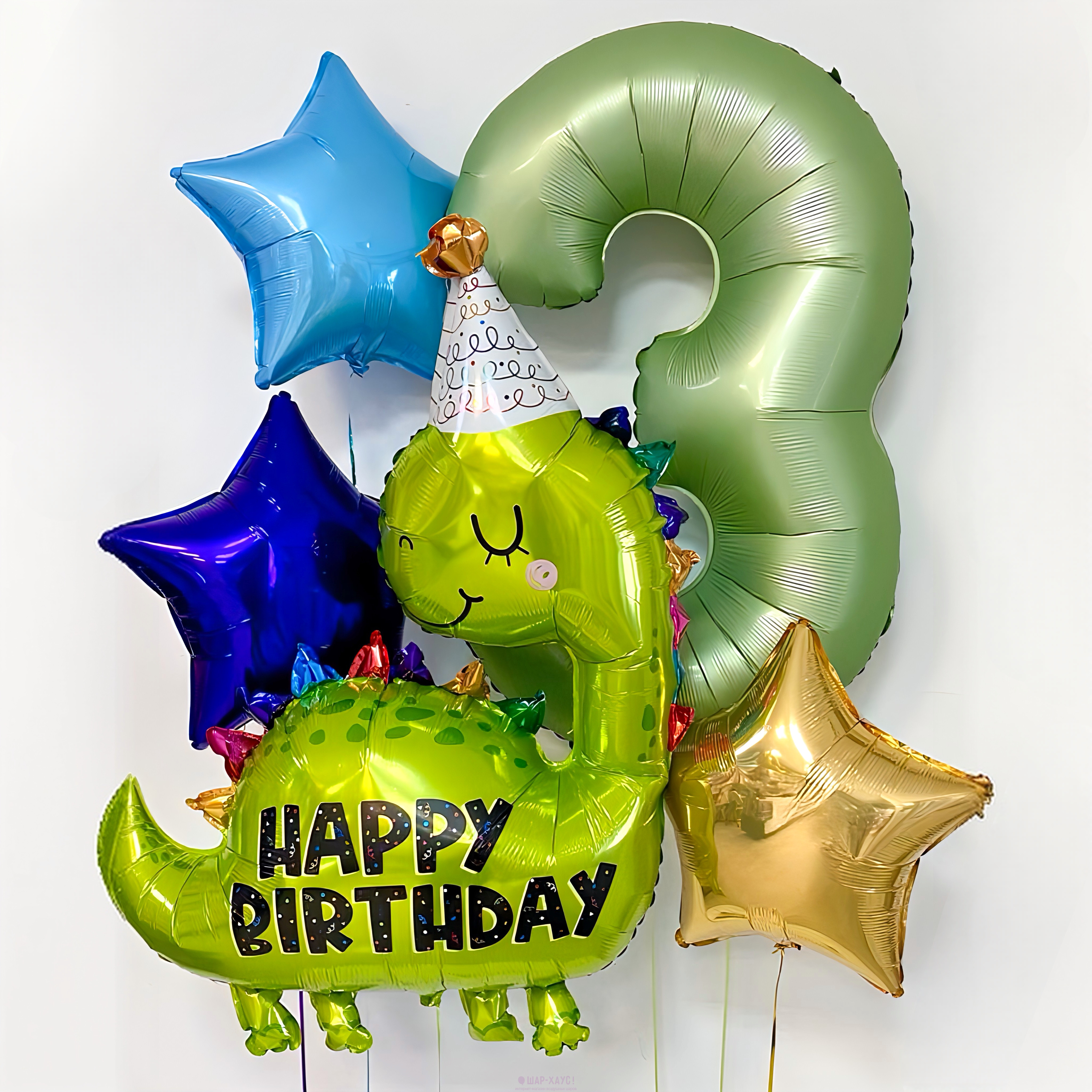 • 1 Фольгированный шар "Динозаврик в колпачке" (97 см, Betallic)