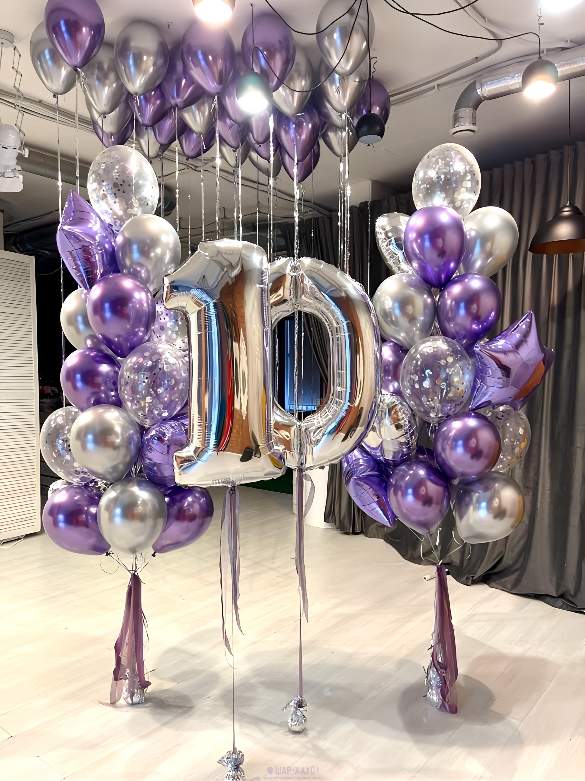 • 30 Латексных воздушных шаров хром под потолок с дождиком (35 см)