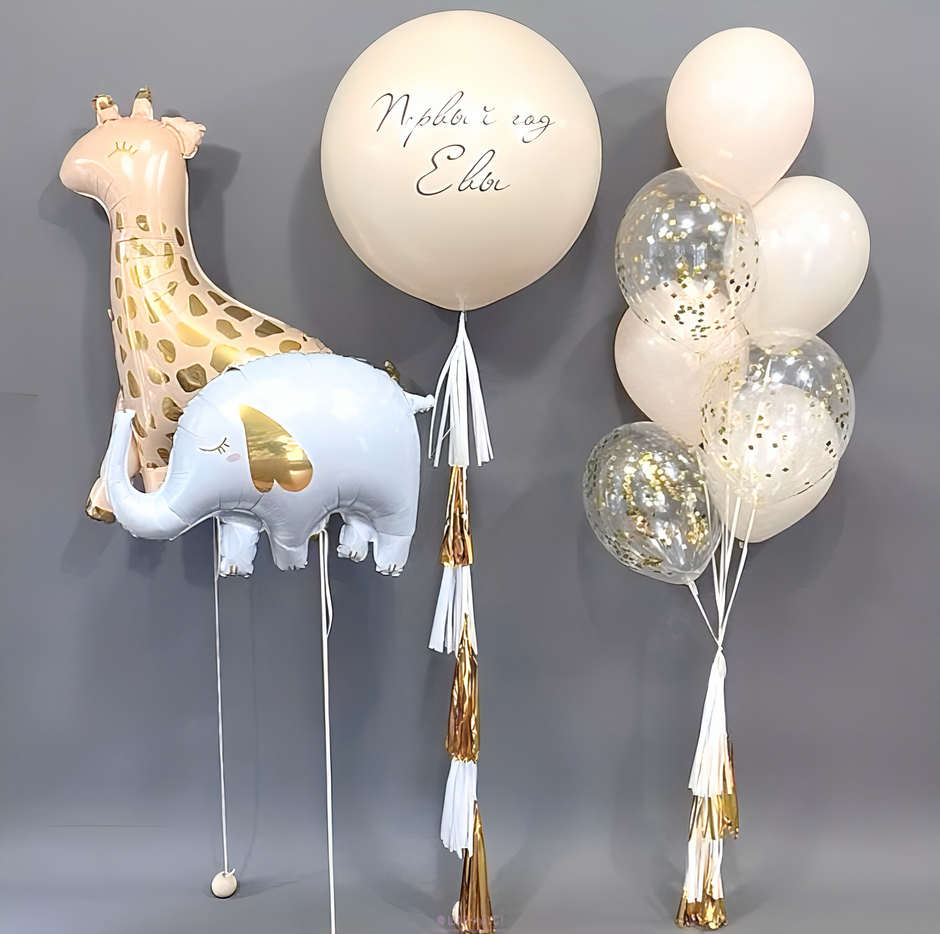 • 1 Шар-гигант с гирляндой тассел и надписью на выбор (61 см)