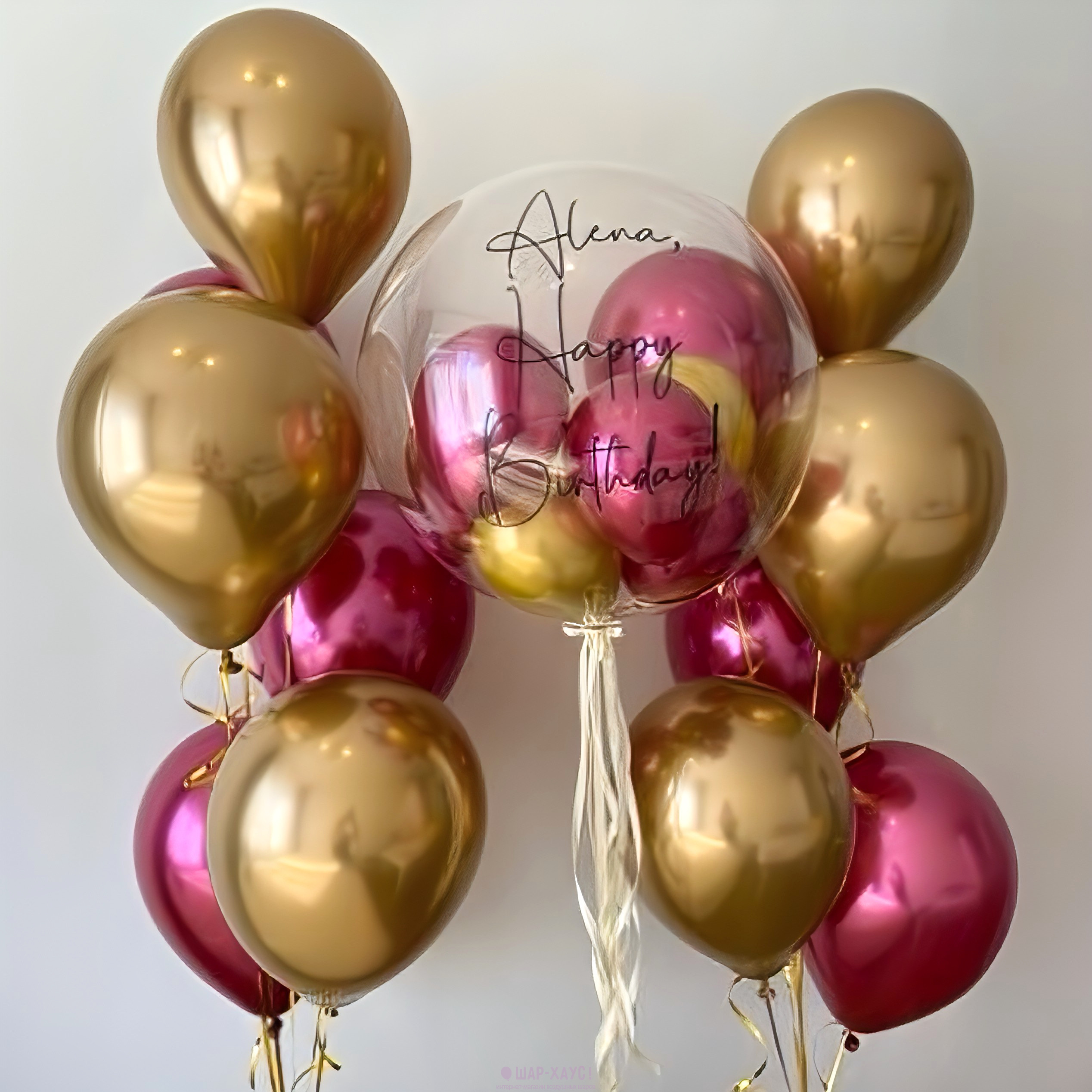 • 1 Воздушный шар Бабл с шарами внутри и надписью на выбор (60 см)