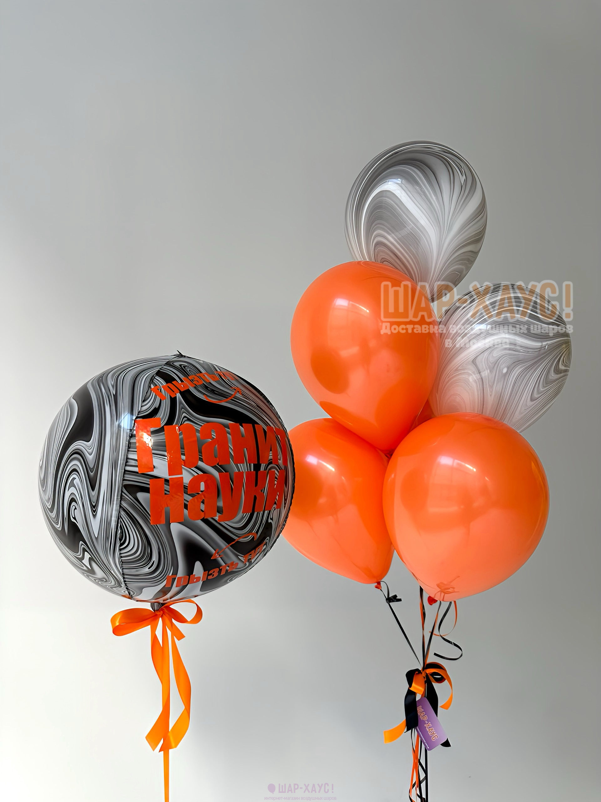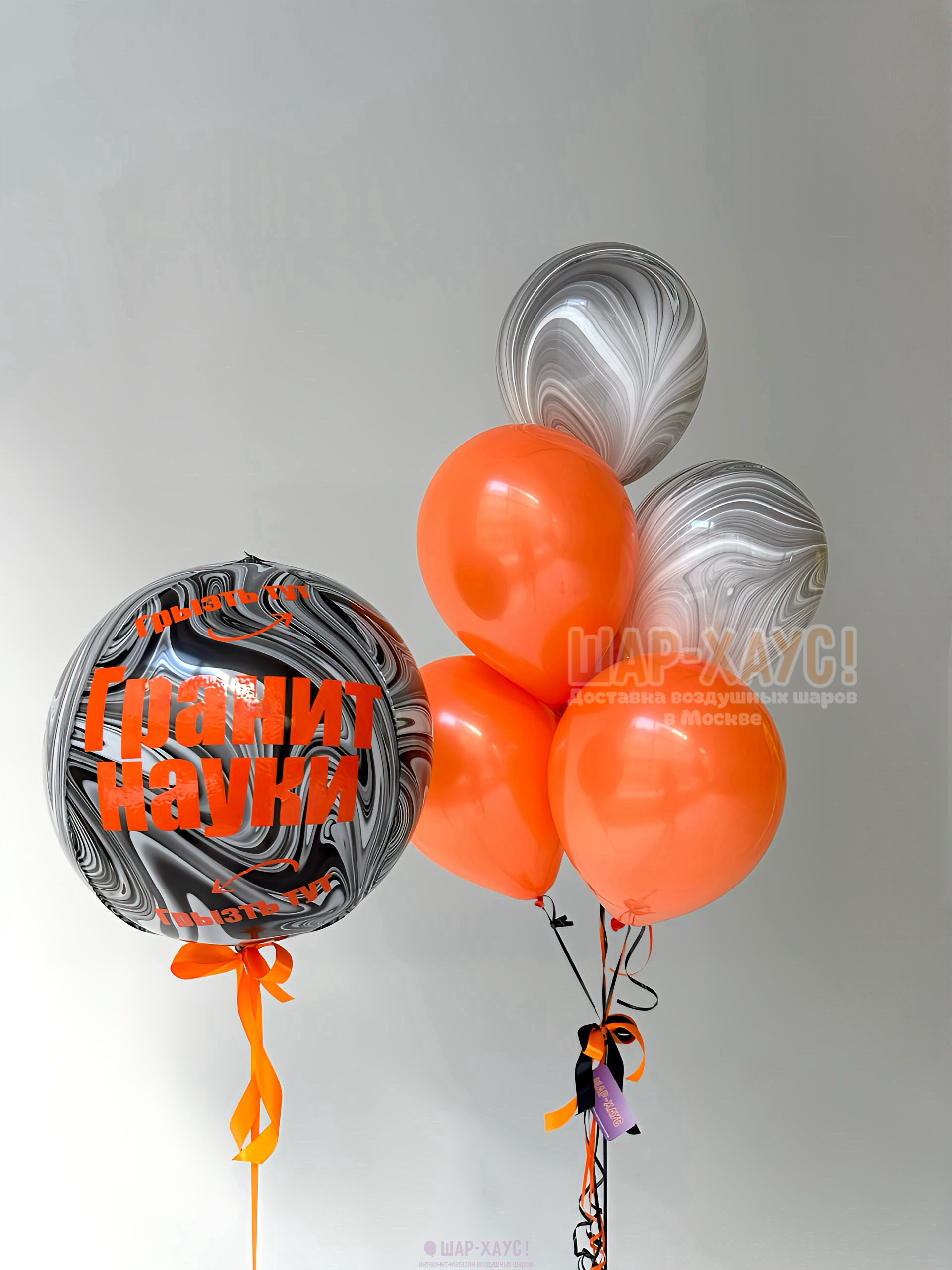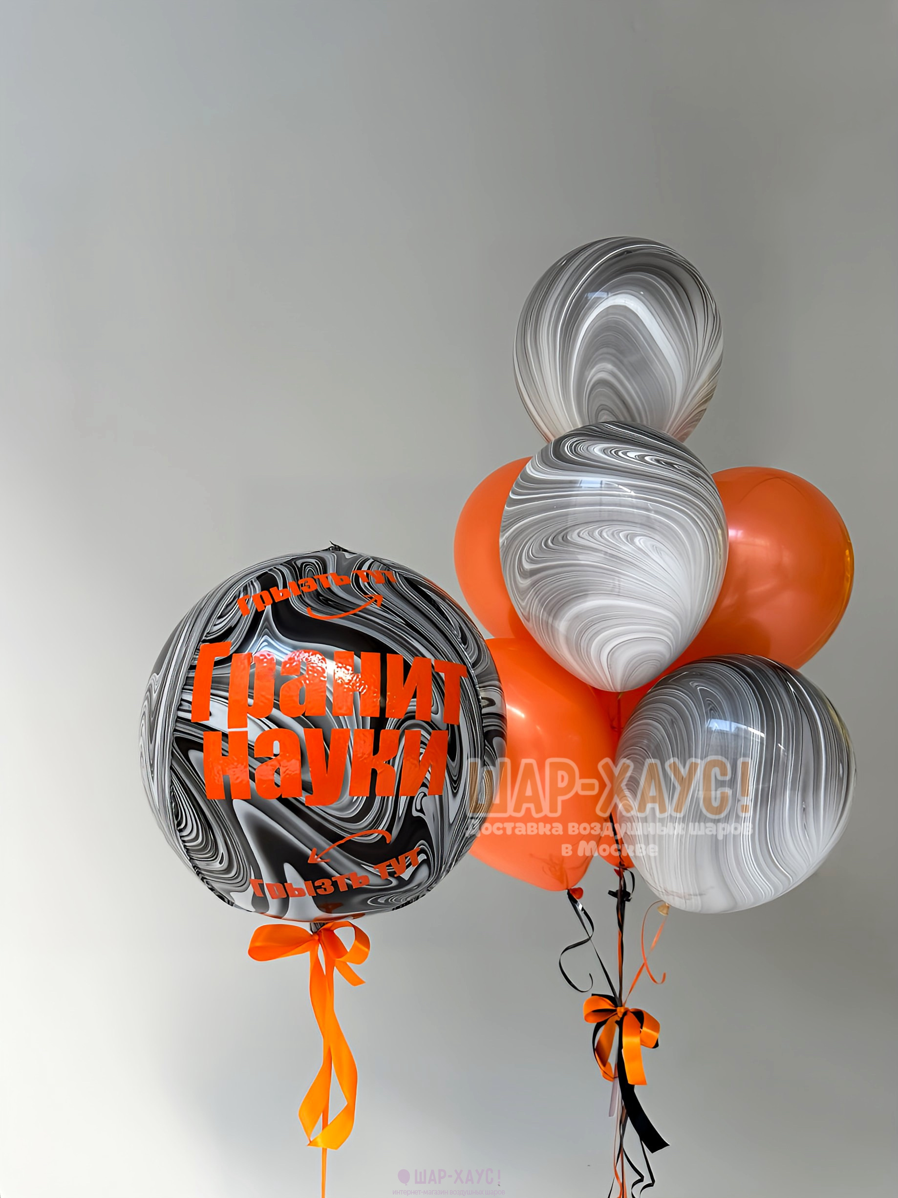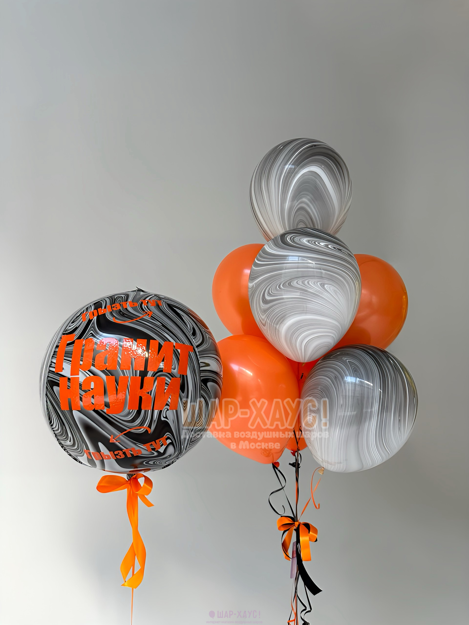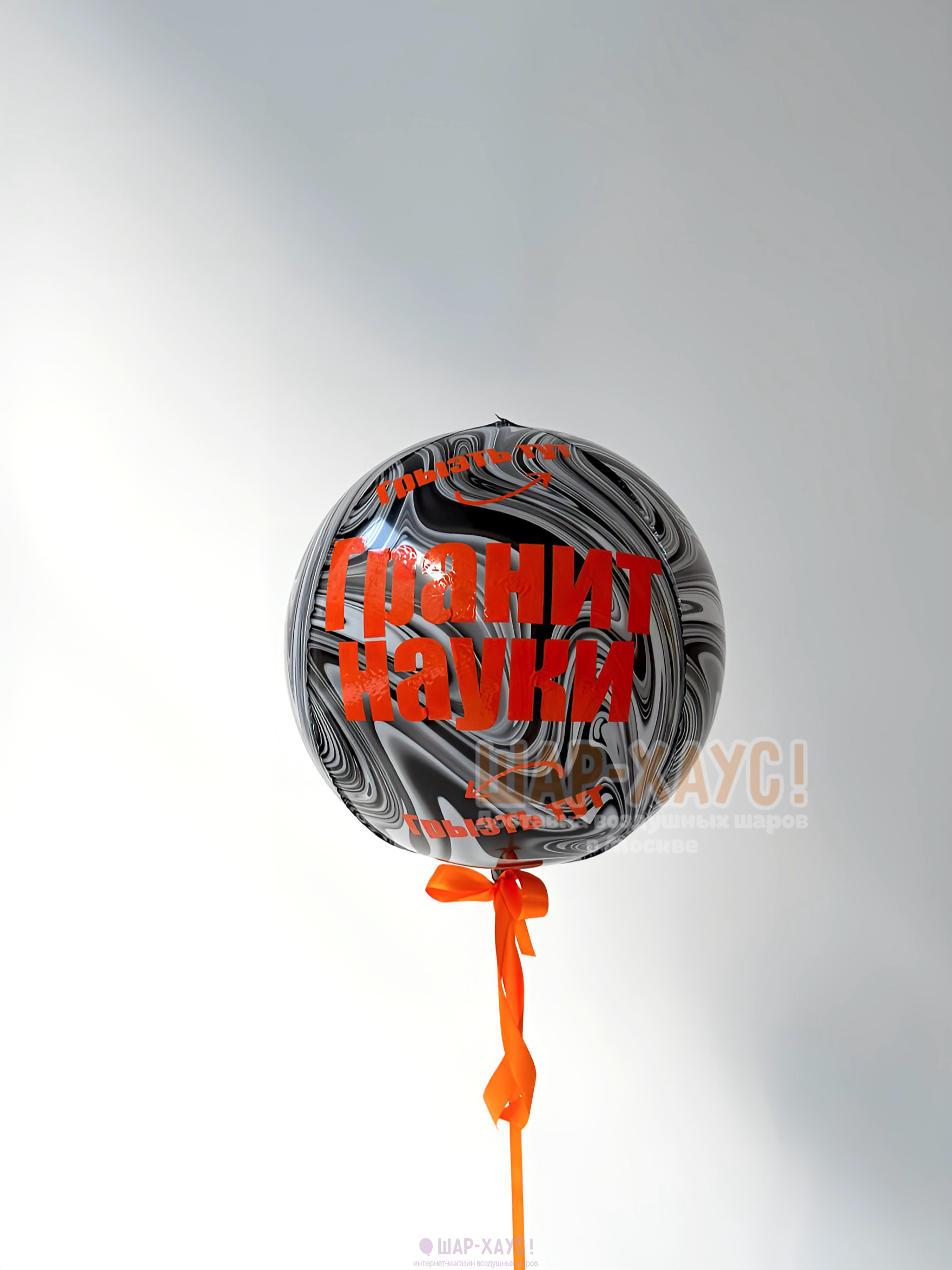 • 1 Фольгированная сфера "Черный мраморный агат 3D" с надписью на выбор (56 см)