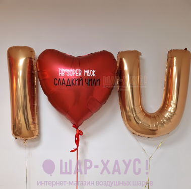 • 1 Фольгированный шар сердце с надписью на выбор (91 см)