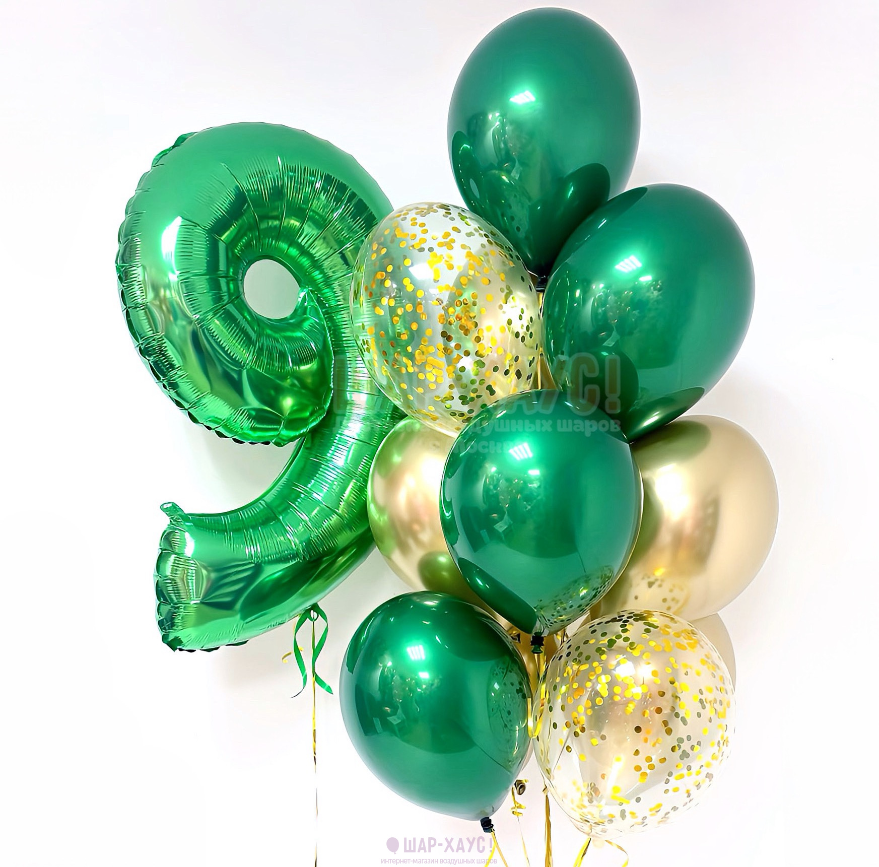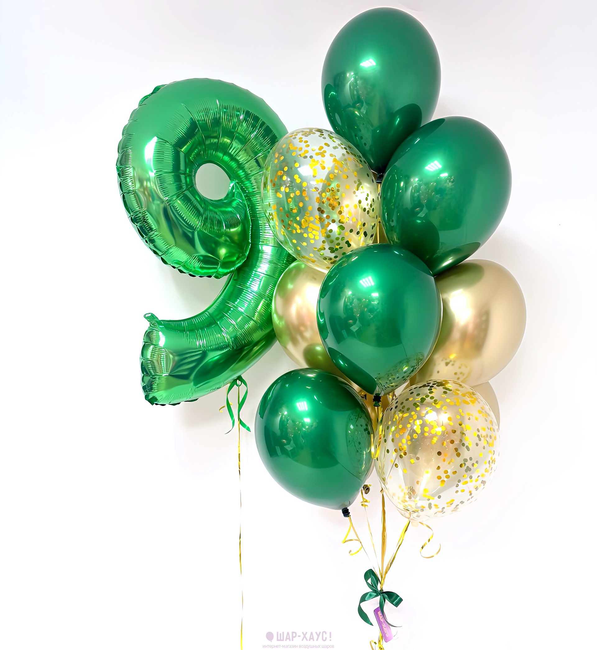 • 4 Стеклянных воздушных шара Дабл стафф зеленый хром + зеленый кристалл (35 см)