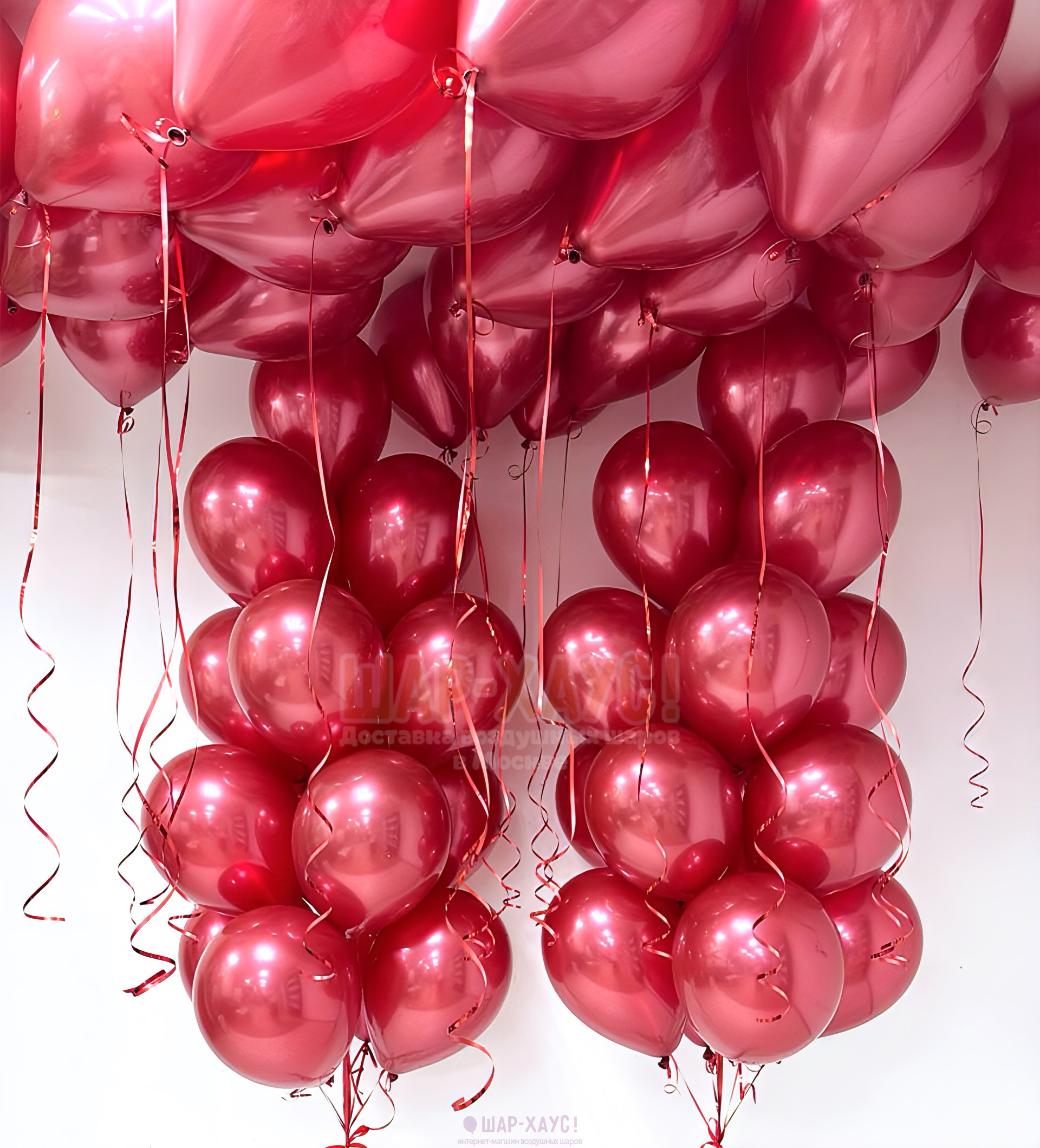 • 25 Латексных воздушных шаров красный хром под потолок (35 см)
