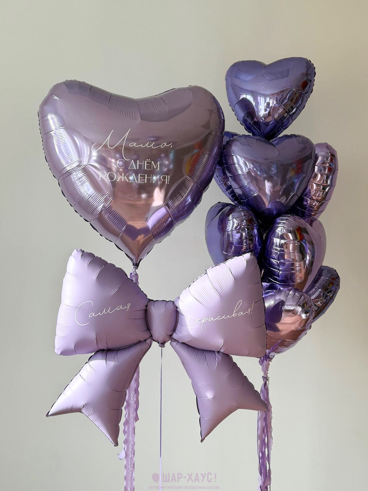 • 1 Фольгированная фигура "Бант сиреневый сатин" с  надписью на выбор (99 см)