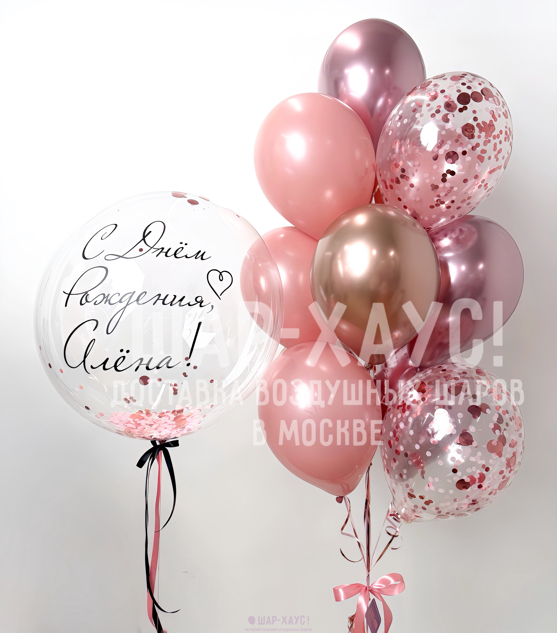 • 1 Прозрачный шар Бабл с конфетти и надписью на выбор (50 см)
