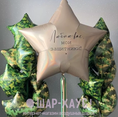 • 2 Фонтана по 8 фольгированных звезд камуфляж (45 см)