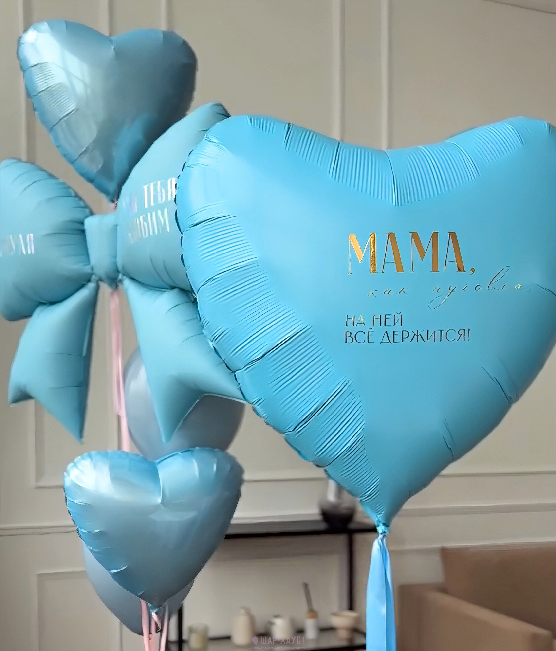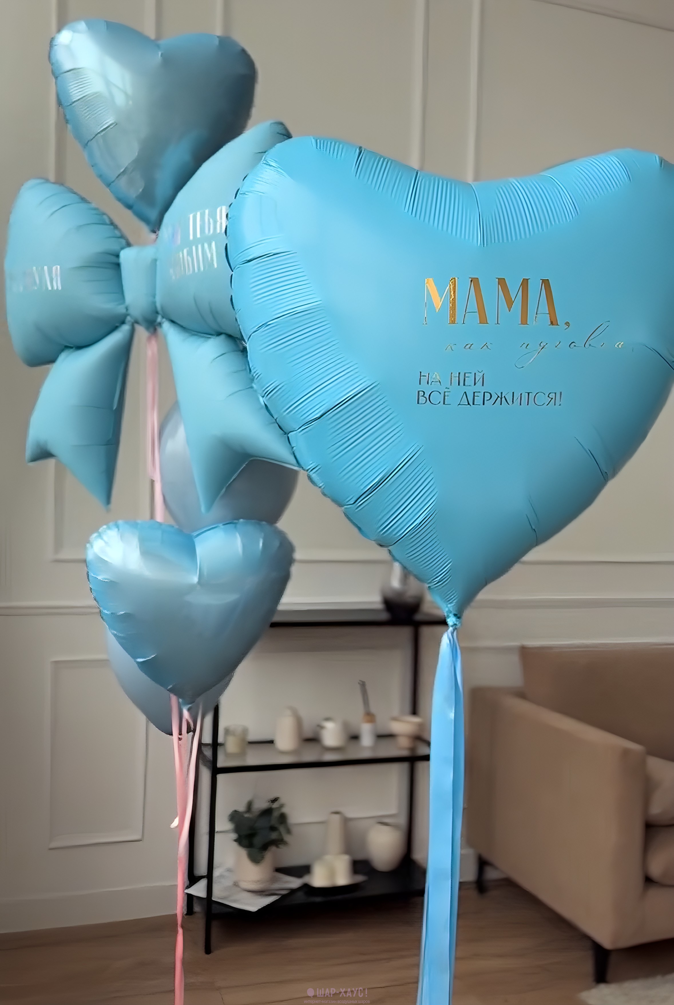 • 1 Фольгированная фигура "Бант голубой сатин" с  надписью на выбор (99 см)