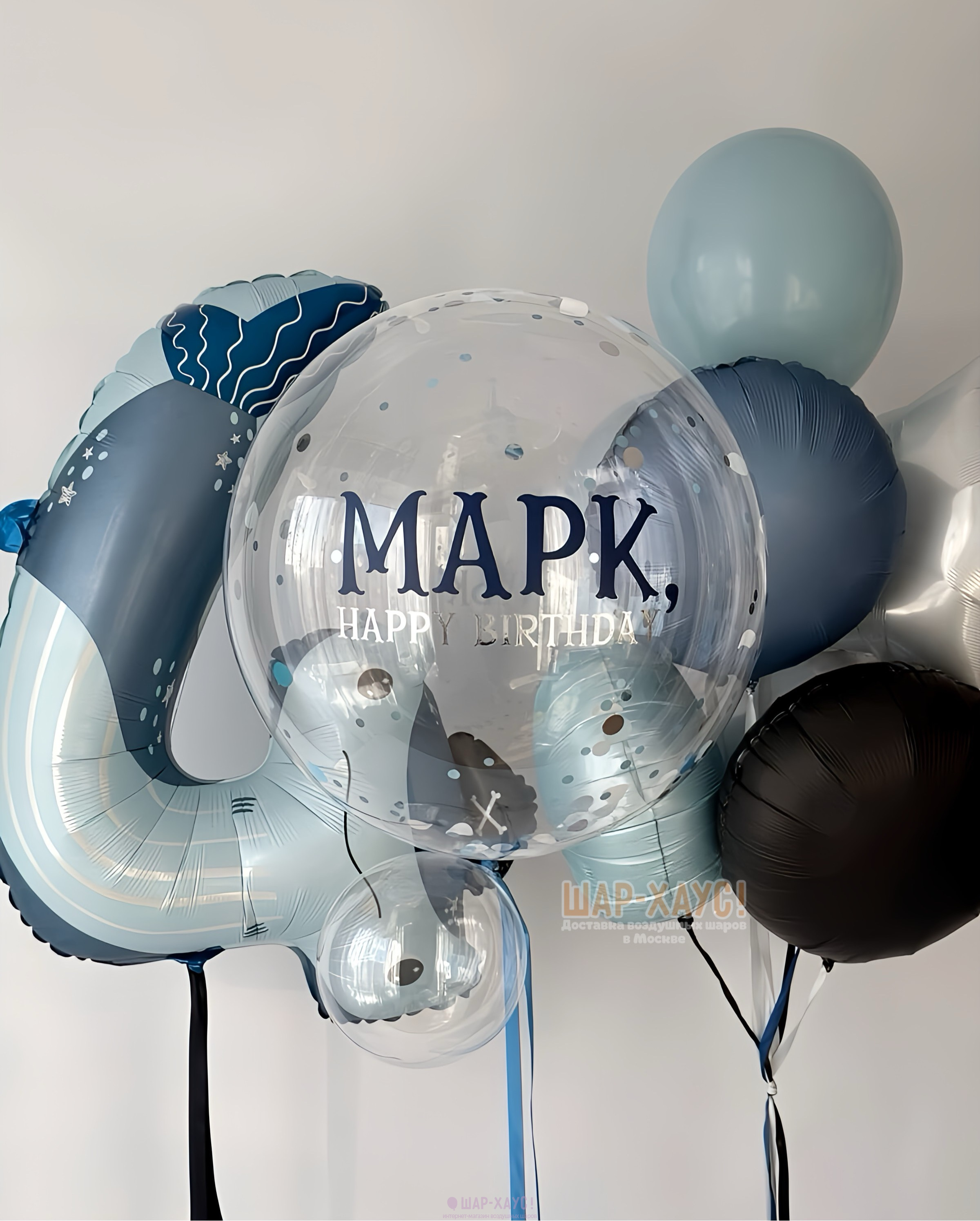 • 1 Воздушный шар Бабл с конфетти внутри и надписью на выбор (50 см)