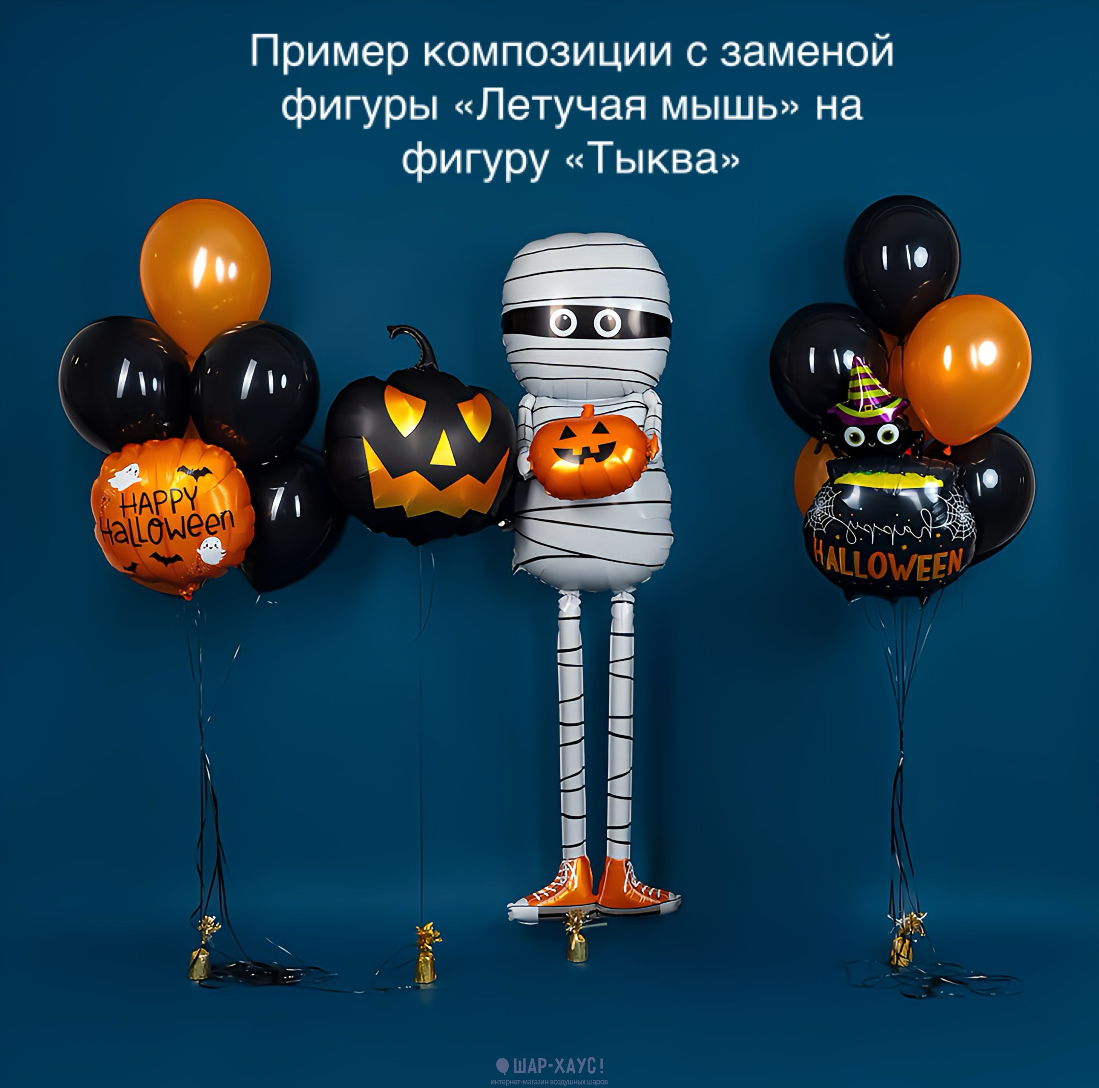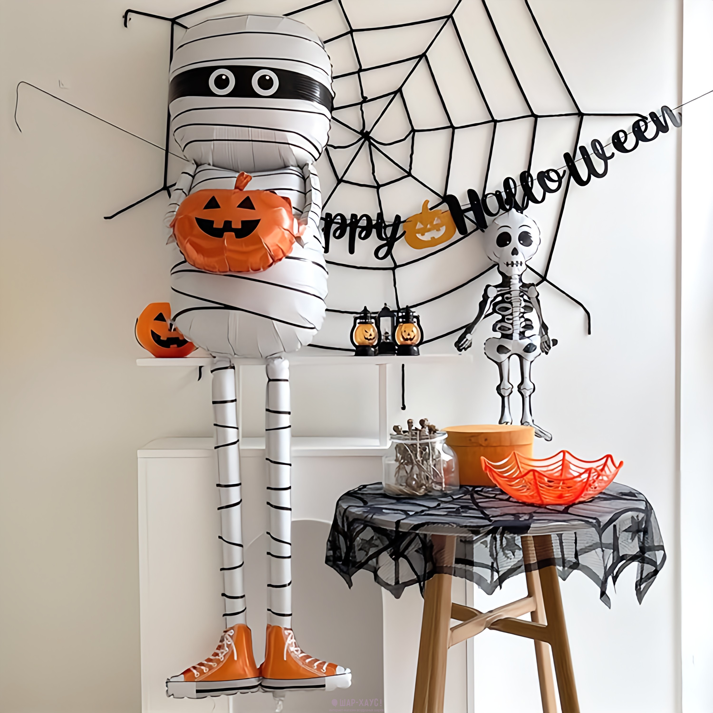 Композиция из шаров "Мумия, мышка и два фонтана на Хэллоуин"