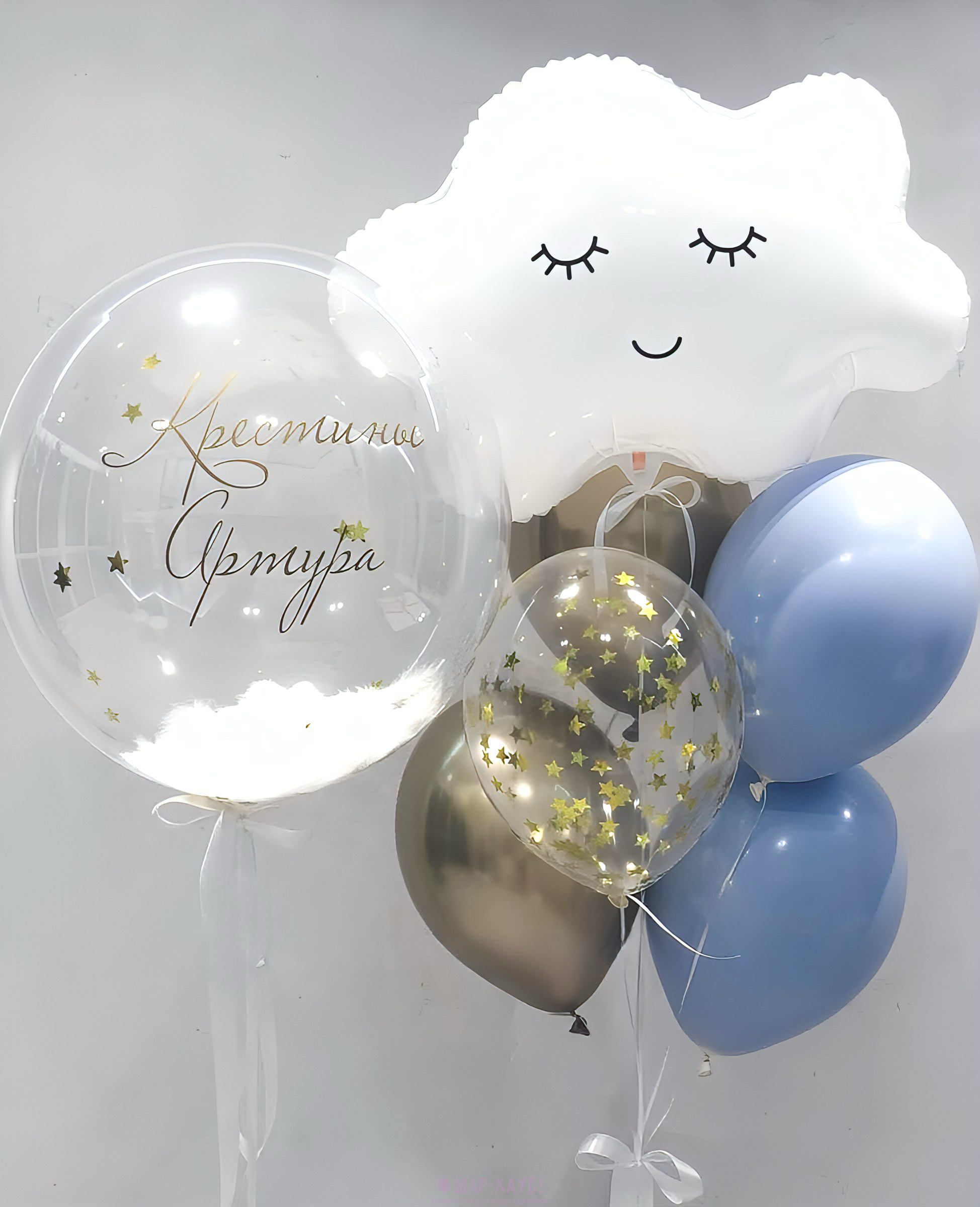 Композиция из шаров на крещение "Золотые звездочки"