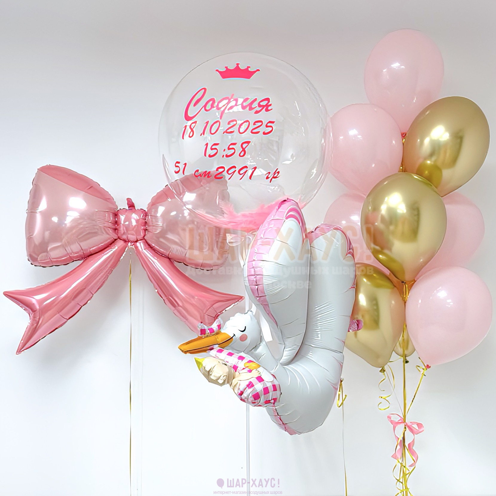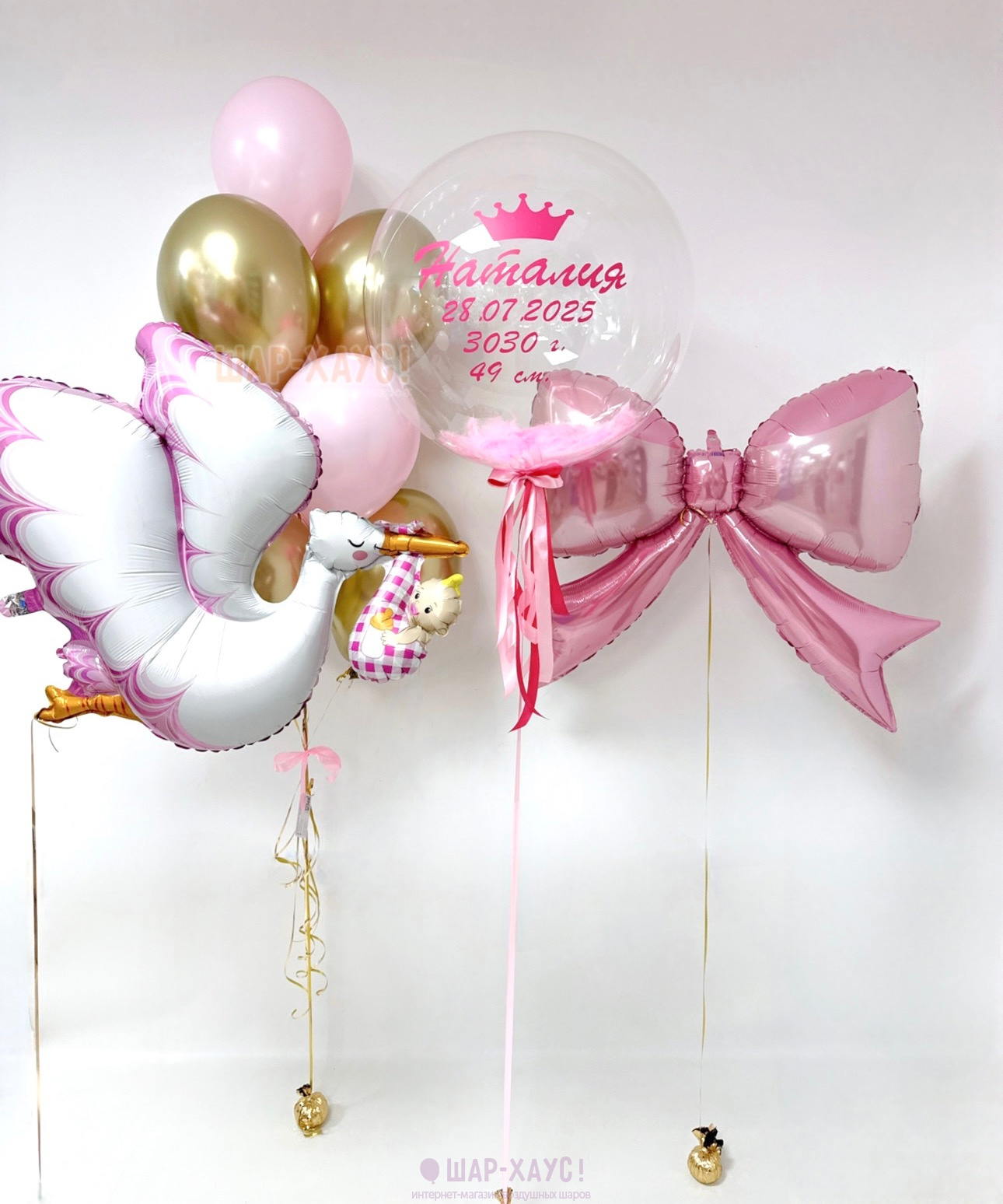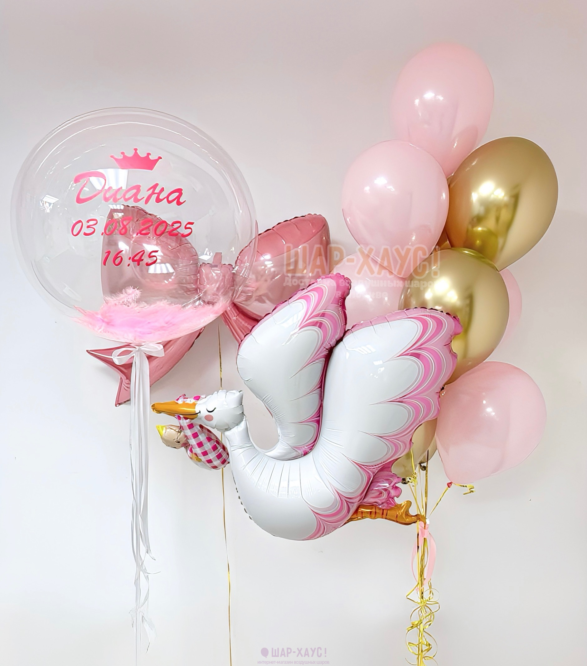 • 1 Фольгированная фигура "Аист с девочкой" (96 см)