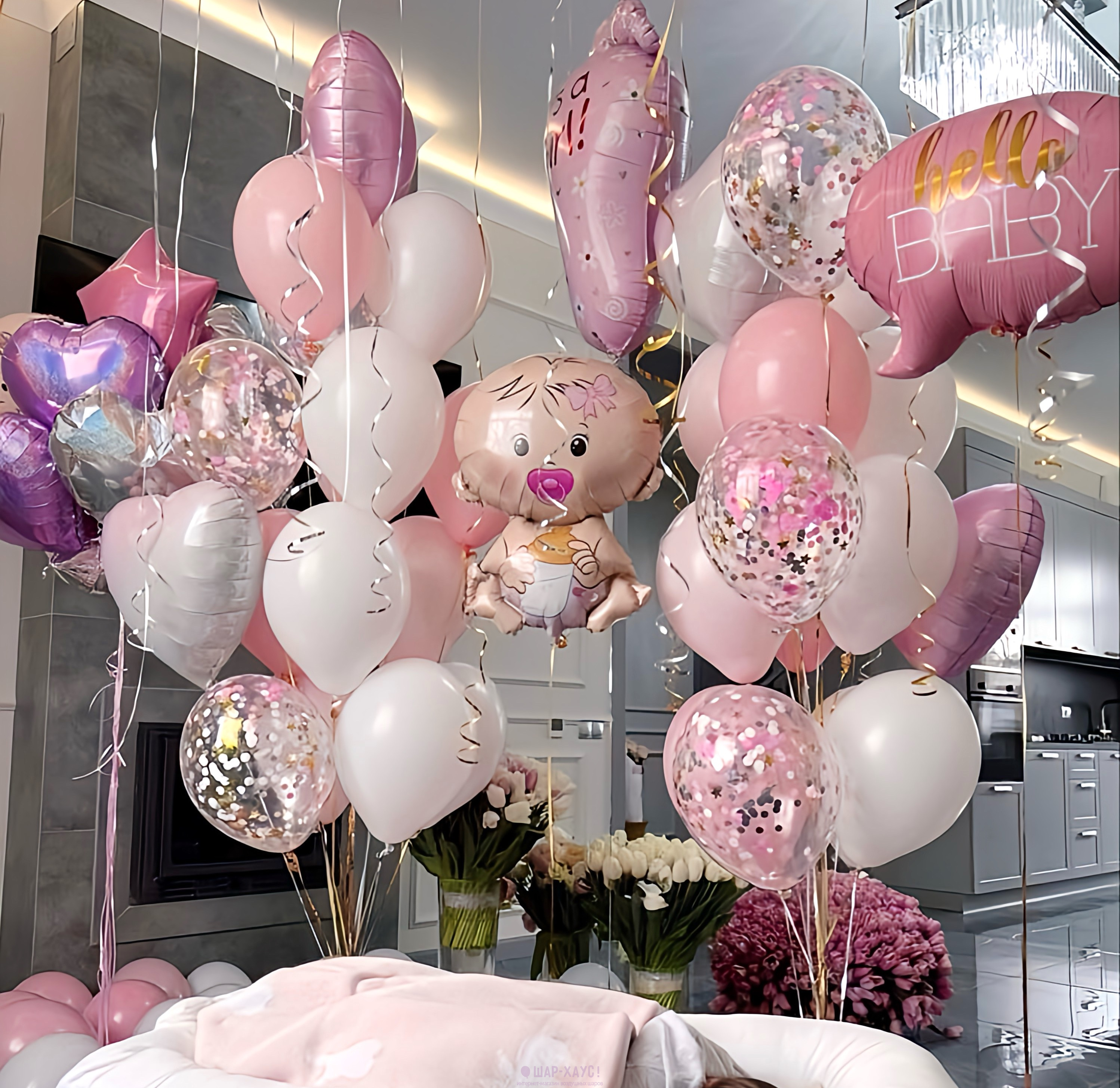 • 10 Латексных воздушных шаров на пол (белые + розовые)