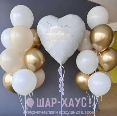Композиция из шаров на выписку "Спасибо за доченьку"