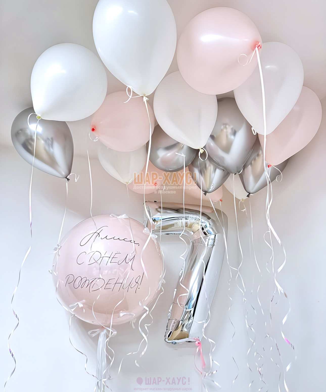 Вы можете изменить состав и цвет шариков в данной композиции, а также индивидуальную надпись.