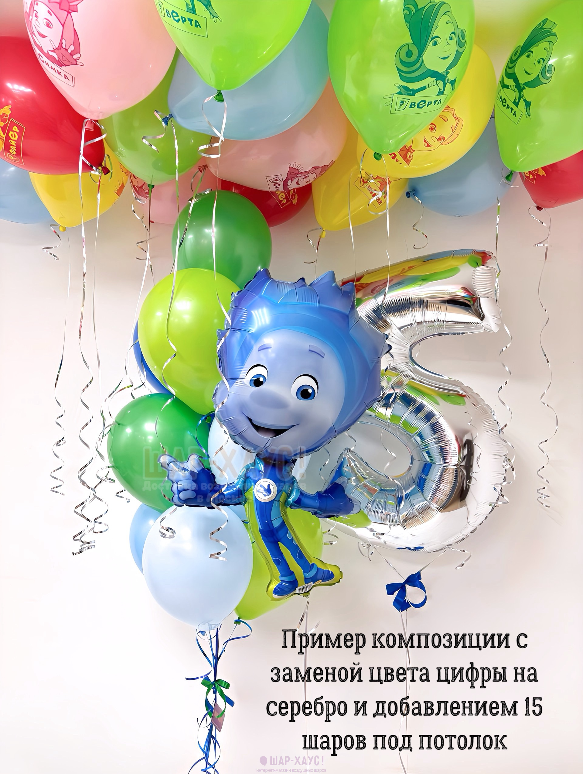 Композиция из шаров "Нолик с фонтаном и цифрой"