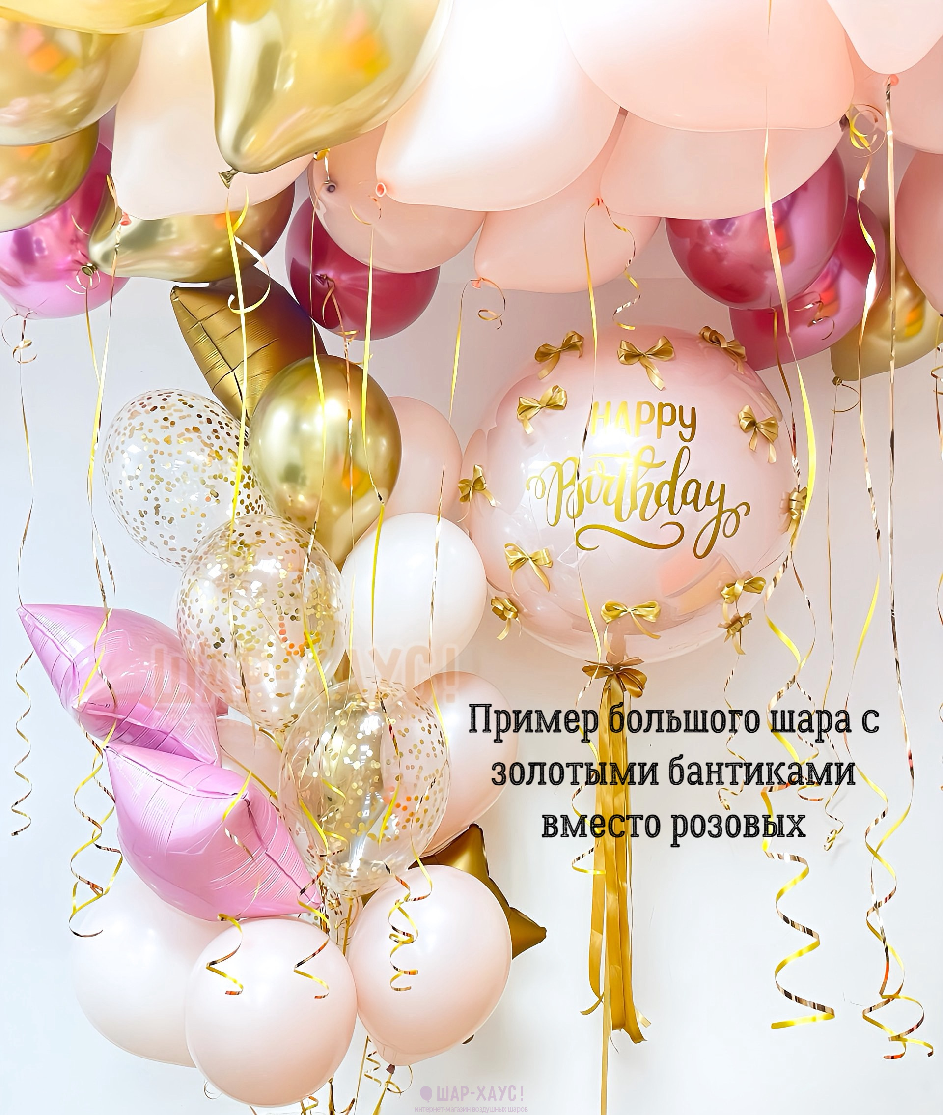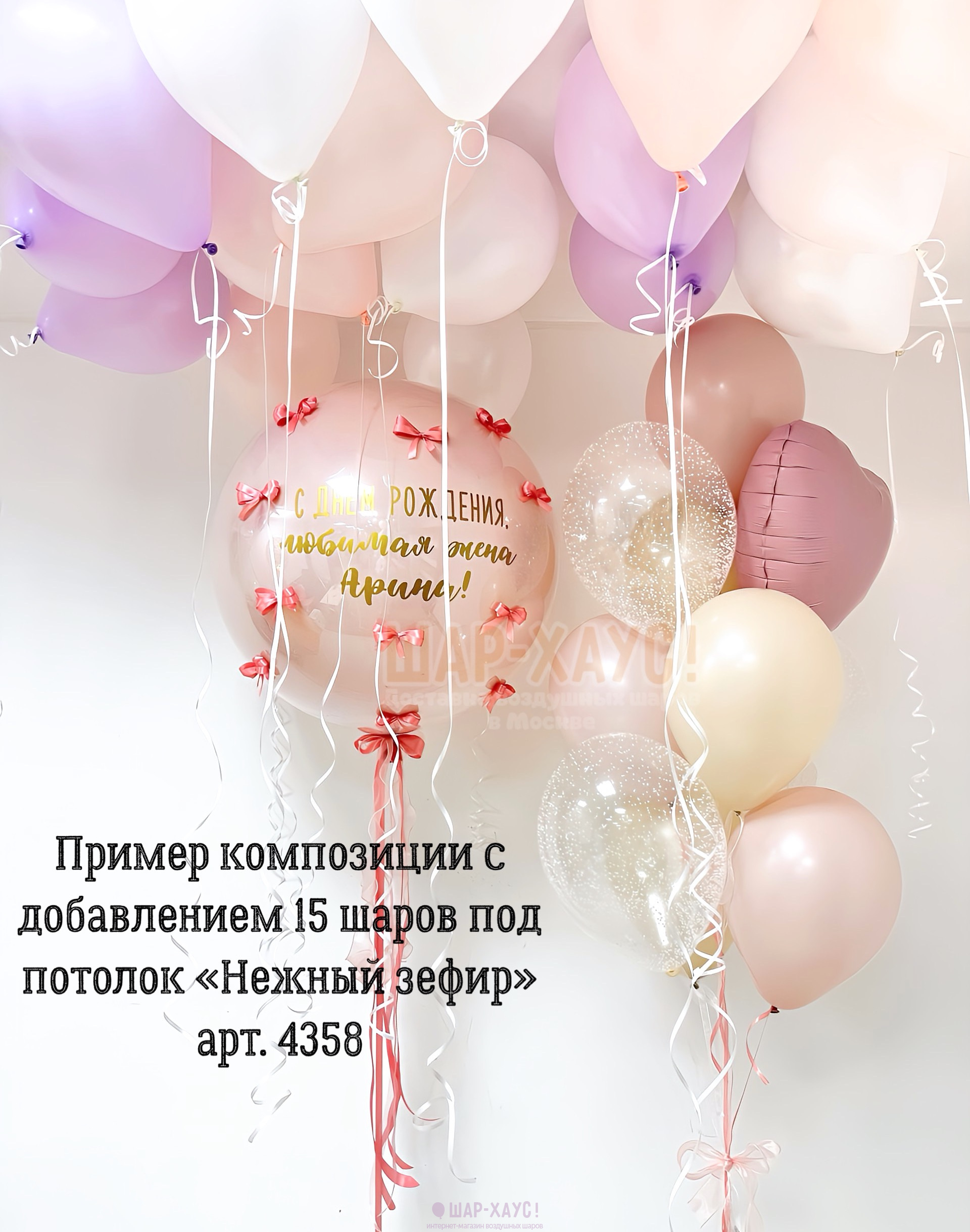 Мы можем привезти данные шарики как в виде композиции, так и в распущенном виде (в пакете), которые вы в последствии можете выпустить под потолок или украсить ими комнату самостоятельно.
