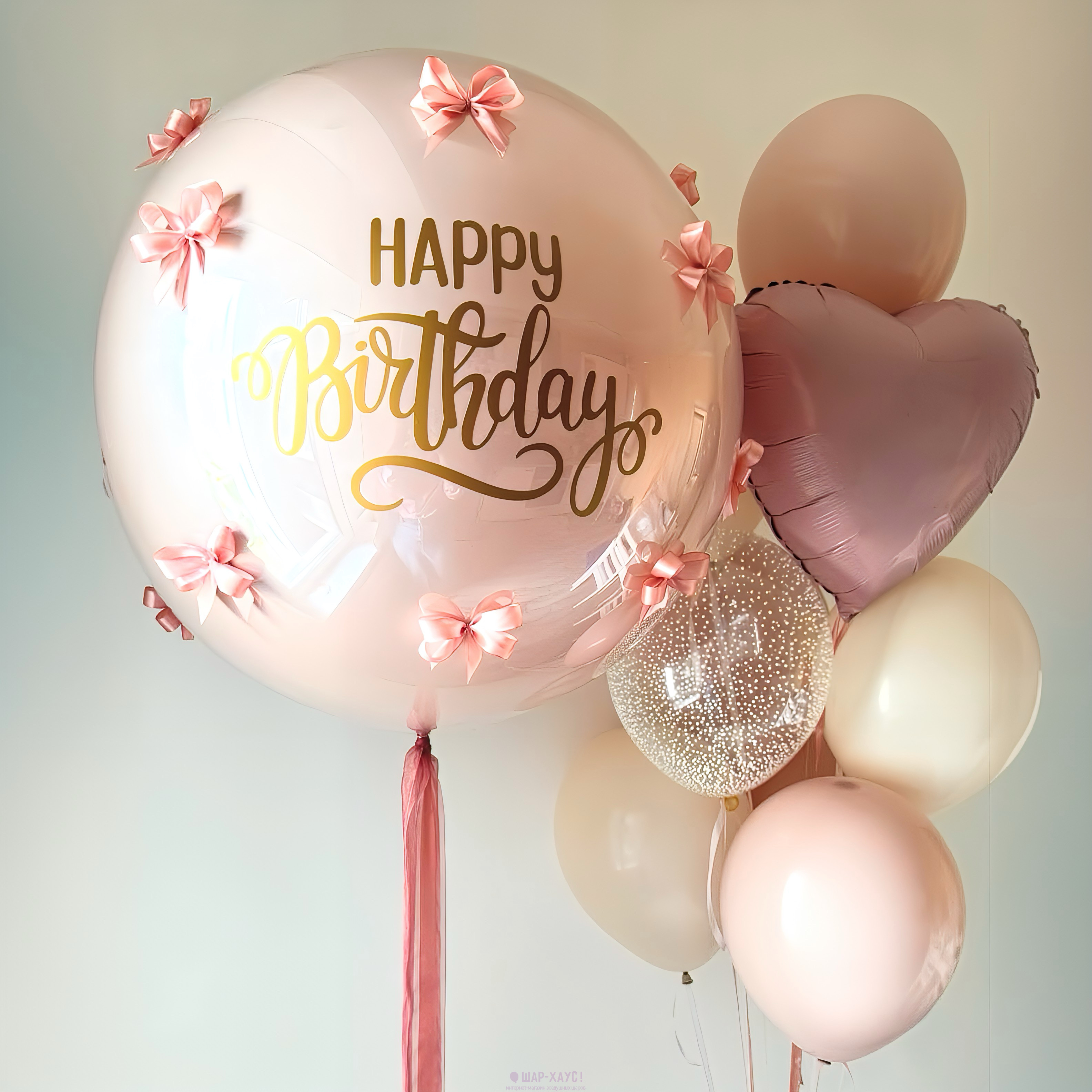 • 1 Стеклянный шар Дабл стафф с надписью на выбор и декоративными бантиками (61 см)
