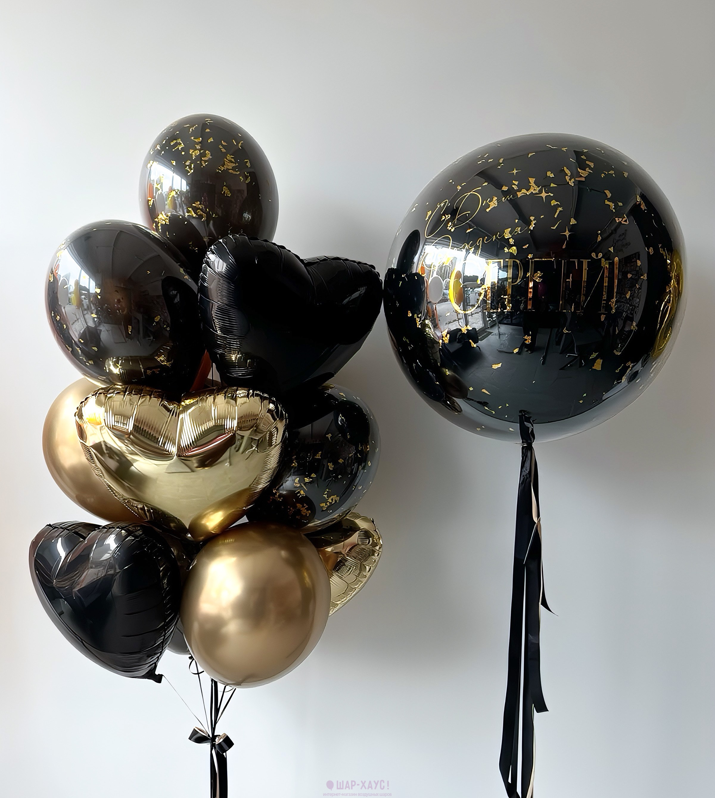 • 1 Большой стеклянный шар Дабл стафф с конфетти-крошкой и надписью на выбор (65 см)