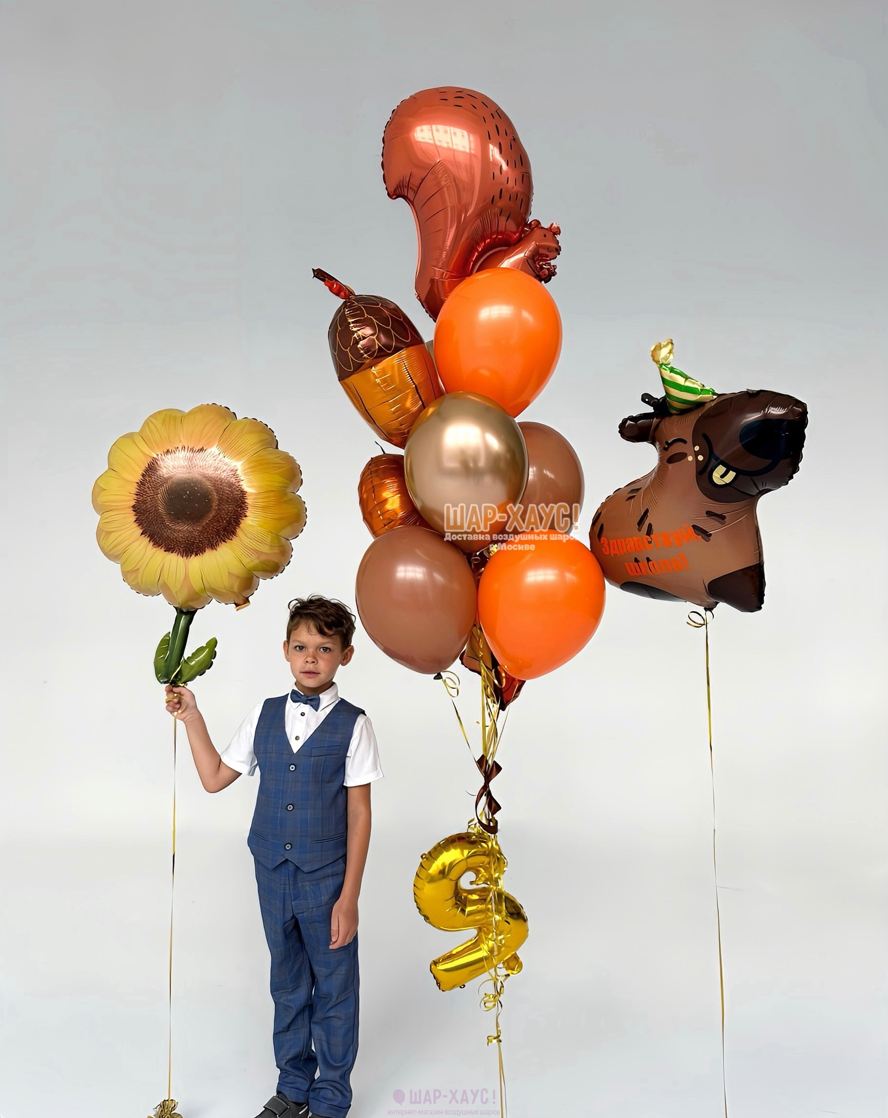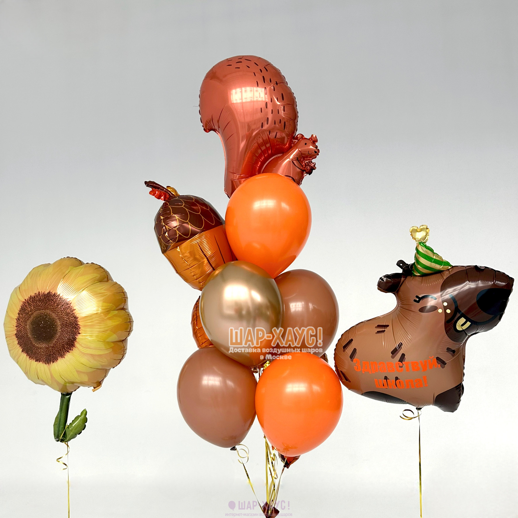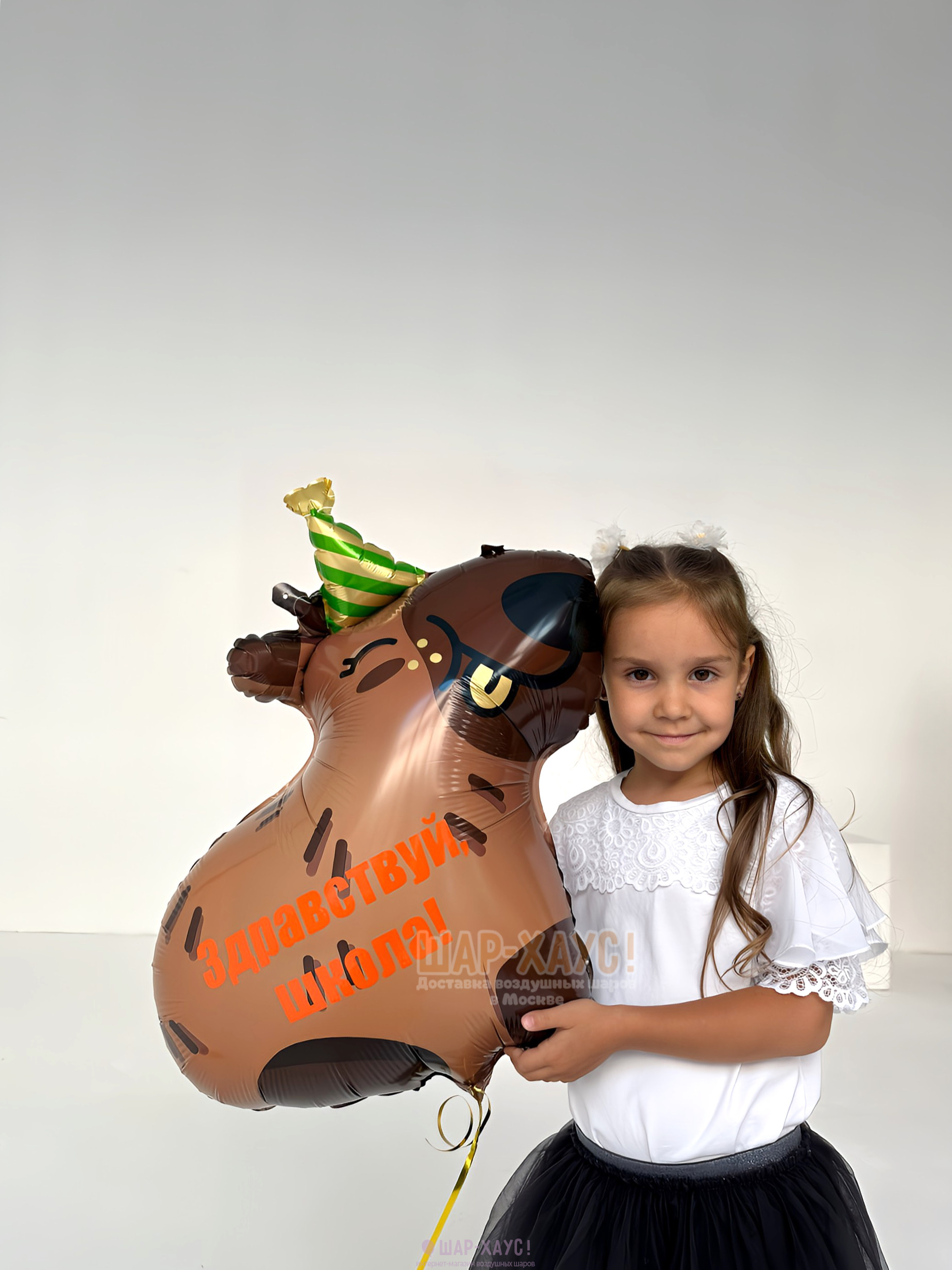 • 1 Фольгировання фигура "Капибара" с надписью "Здравствуй школа!" (79 см)