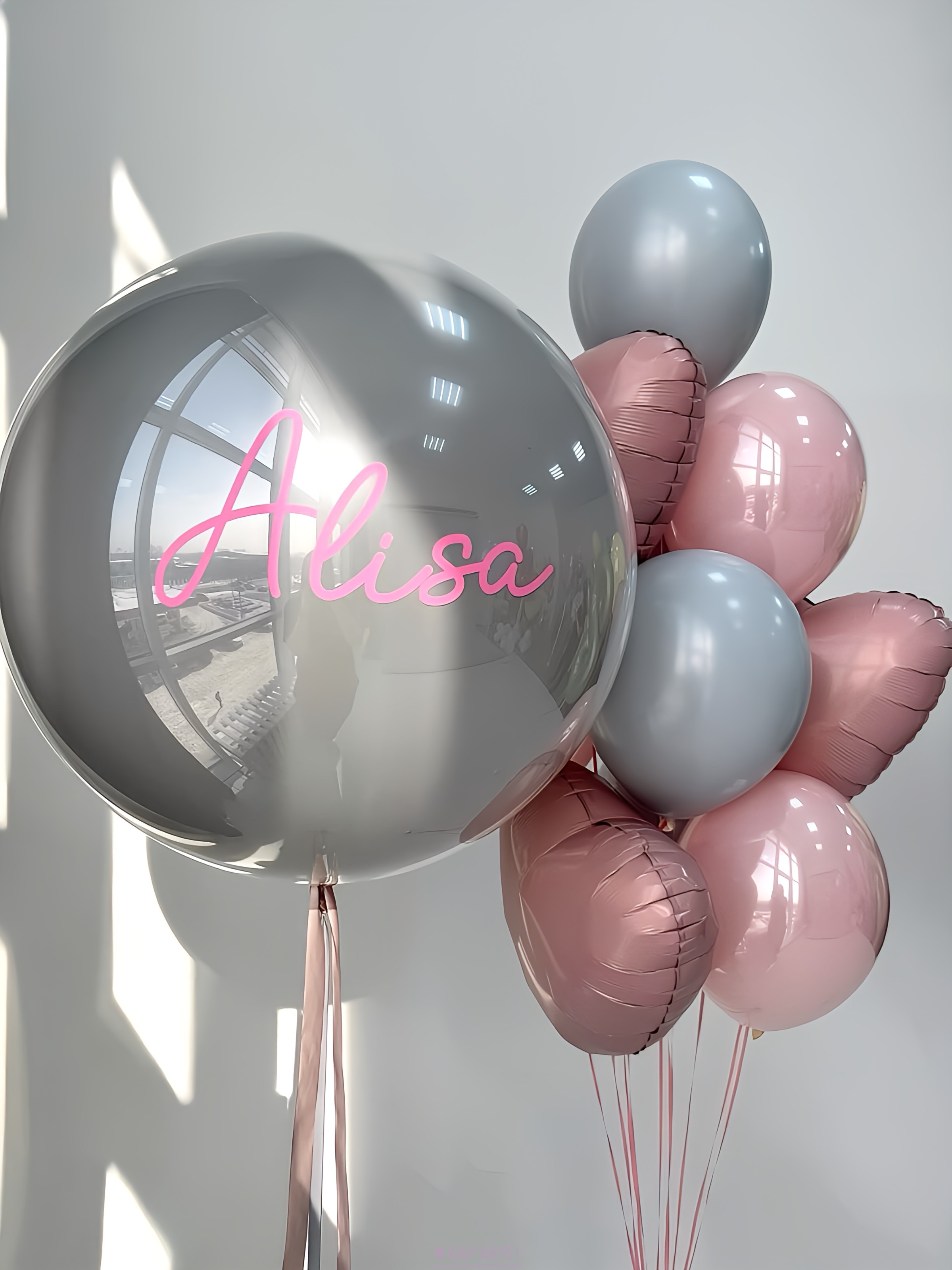 • 1 Стеклянный воздушный шар Дабл стафф с надписью на выбор (60 см)