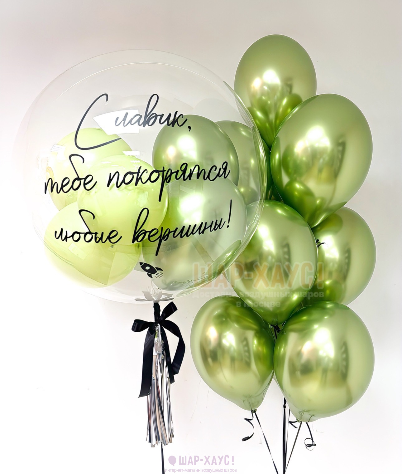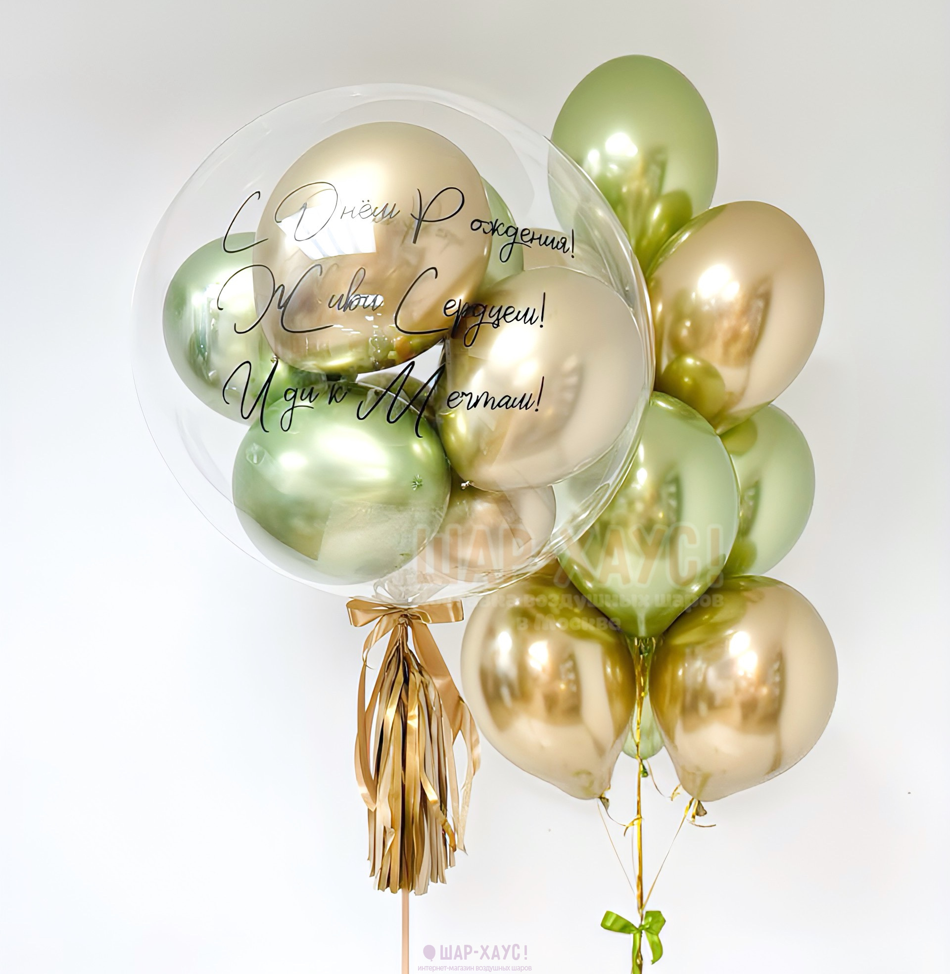 • Воздушный шар Бабл с шариками внутри, надписью на выбор и кистью тассел (60 см)